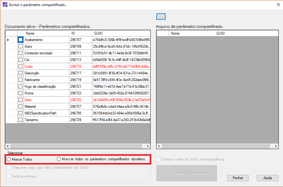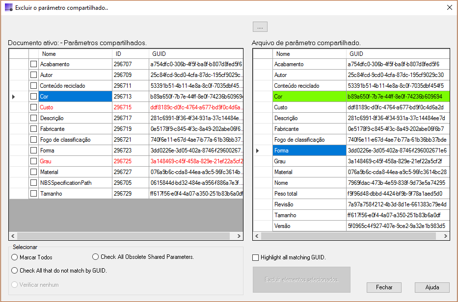 Você também pode abrir seu arquivo de parâmetros compartilhados no App para compará-lo contra o documento ativo, portanto, facilitando a fácil identificação de parâmetros para adicionar, potencialmente salvar horas de trabalho.