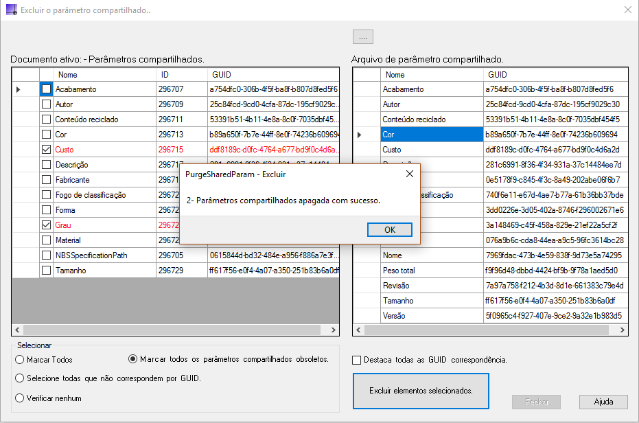Este aplicativo permite que você remover o parâmetro compartilhado em um documento ativo, permitindo que o recém-nomeado parâmetro para adicionar.