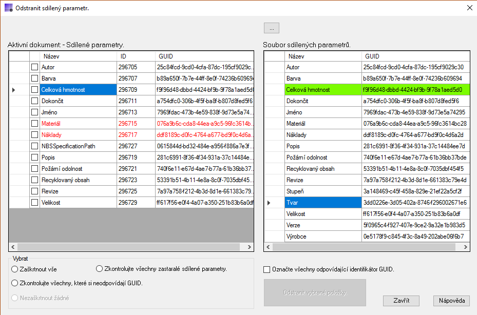 Můžete také otevřít soubor sdílené parametry v aplikaci a porovnali ji s aktivní dokument tedy usnadňuje snadné identifikace parametrů přidat, potenciálně ušetřit hodiny práce.