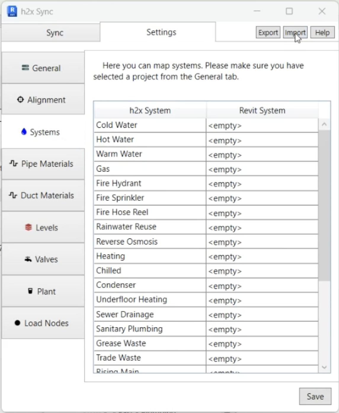 H2X Sync is an extension of H2X in Revit that allows users to seamlessly import their projects into Revit. This extension supports importing pipes, fittings, valves, and ducts into Revit with the correct Revit family mappings