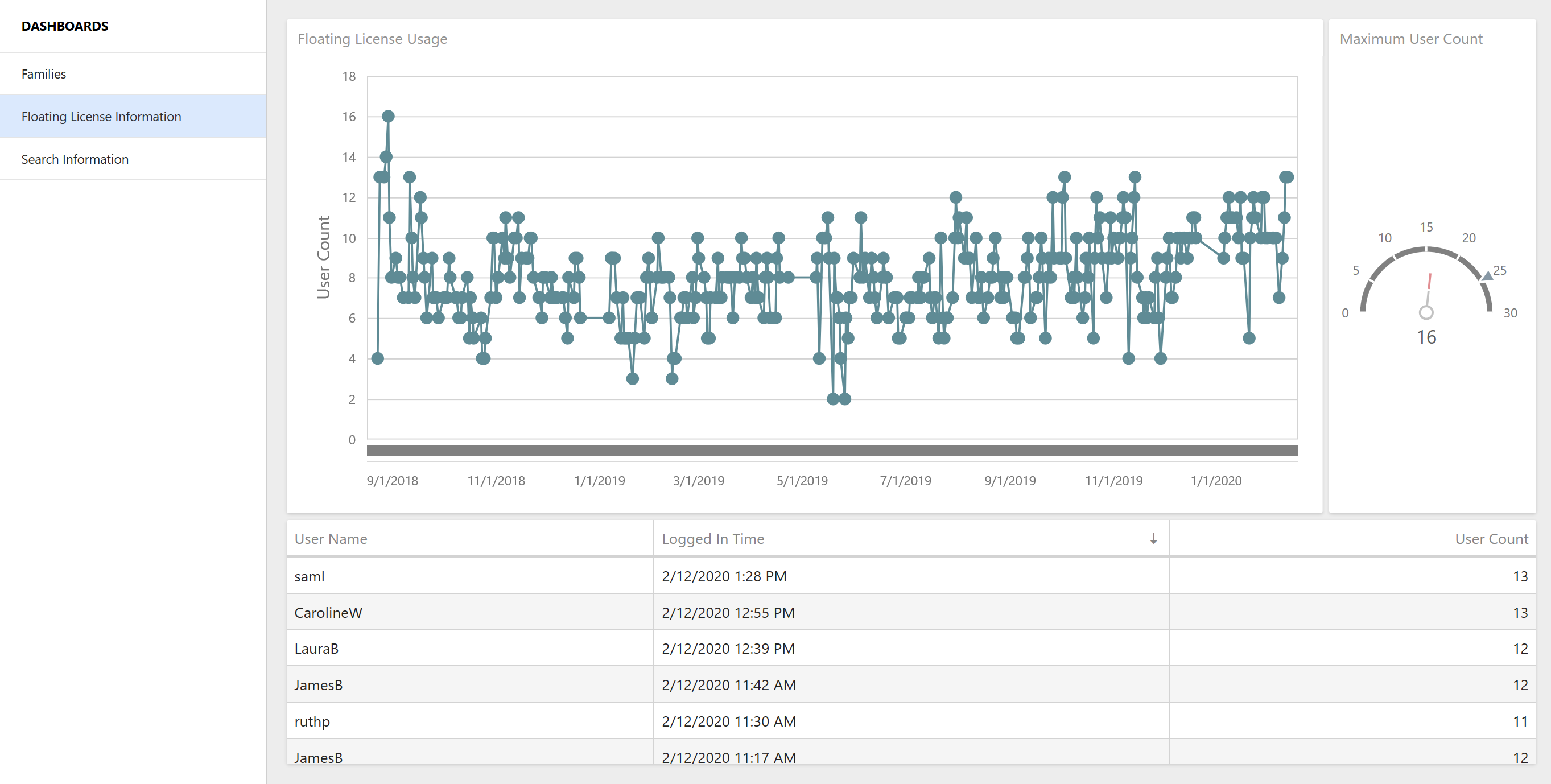- Analytics. Keep track of, and visually see what users are using Family Browser and how. See what the most used families, tabs, and groups are and what users are using them. Analyze what users are searching for and the time it takes the Family Browser to respond to those requests. Keep track of your license usage.