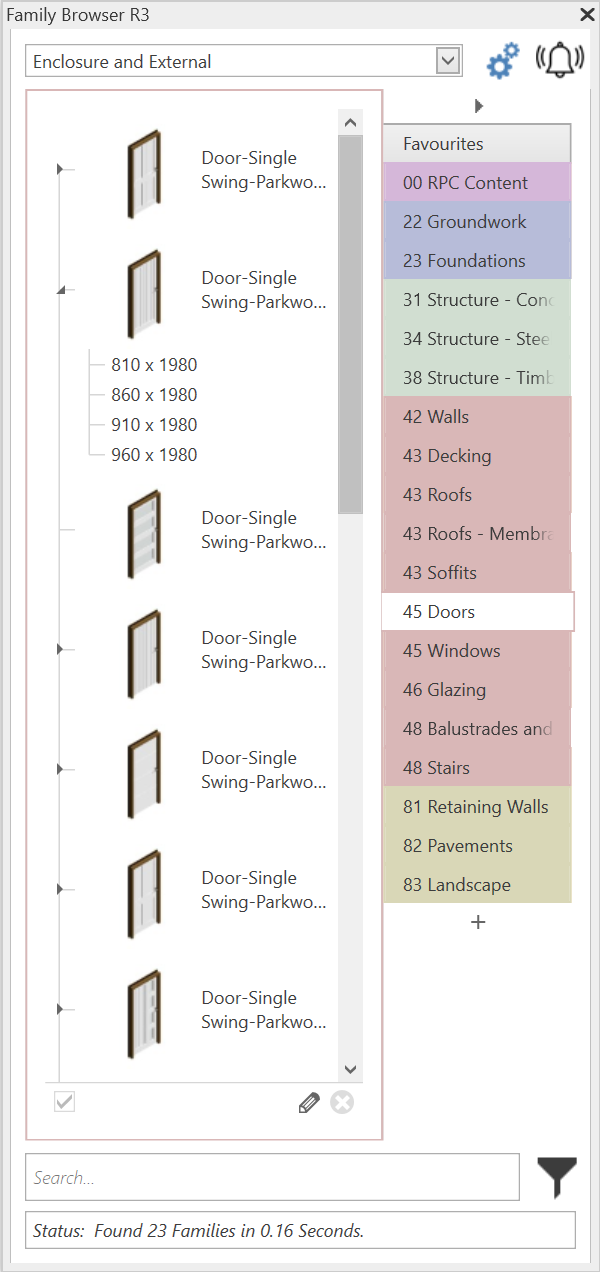 - Search across your entire library with instant feedback. Search by family name, type name, category, parameter value, or customizable tags.
