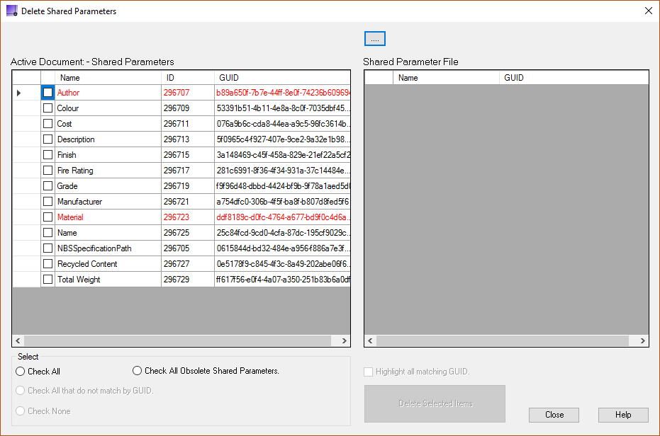You can also open your shared parameters file in the App to compare it against the active document therefore facilitating easy identification of parameters to add, potentially save hours of work.
