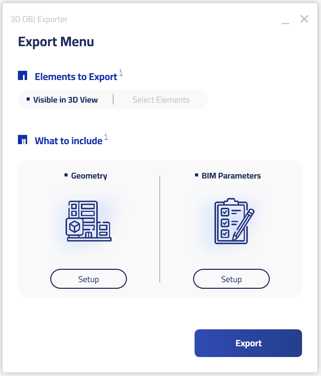 The 3D OBJ Exporter plugin for Autodesk® Revit® is designed to simplify and enhance the exportation process of 3D data from your Revit projects. This tool allows you to seamlessly export data from elements in the active 3D view, making it easier to integrate with various applications, including Virtual Reality (VR) environments.