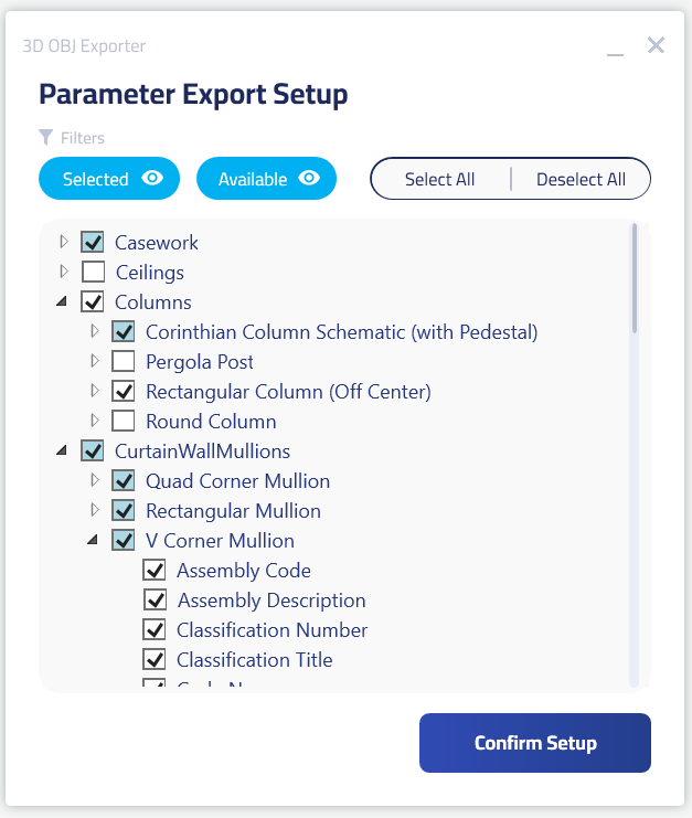 Comprehensive Export Options: Choose to export all visible elements in the active view or selectively export elements based on a custom selection within the active 3D view.