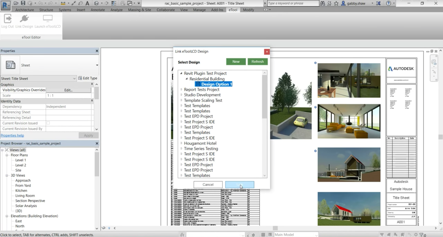 - Allows users to match families with eTool template library (no necessity to populate your families with materials information, inclusion of construction, maintenance, replacement and disposal impacts)