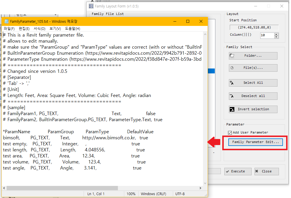 - Family Parameter Edit ...: Add or delete parameters using a text editor