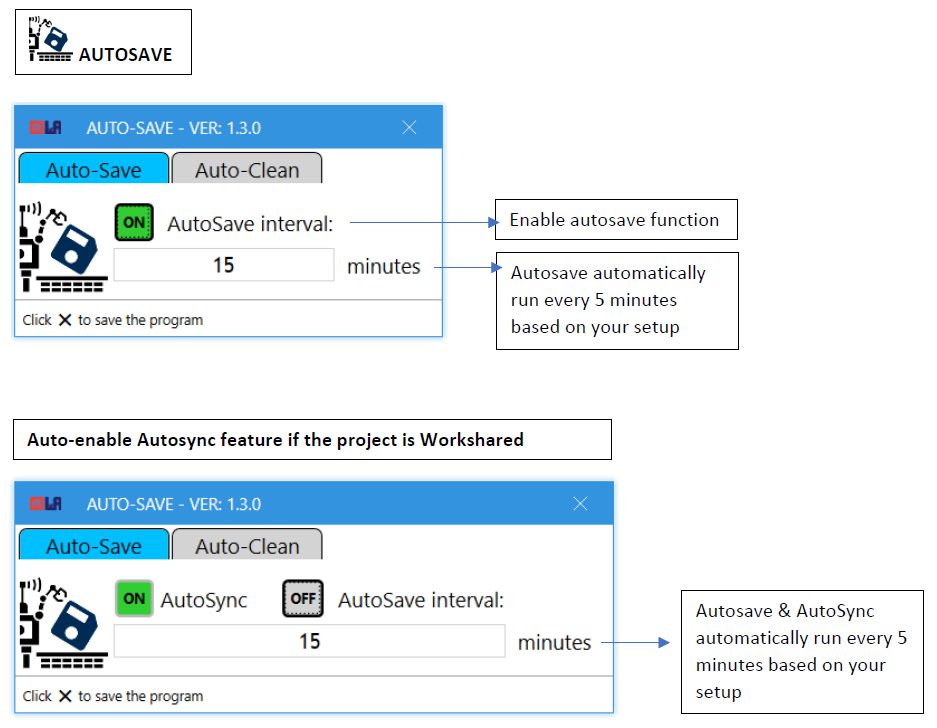 AutoSave CC is a great plug-in for Revit. I was looking for this exact same product that autosaves and synchronizes worksharing models at a regular time interval, and this came up. It was exactly what I was looking for! Thanks for making this!