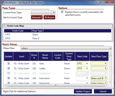 - Create finish floors based on the finish schedule with a single click or for the whole project at once.