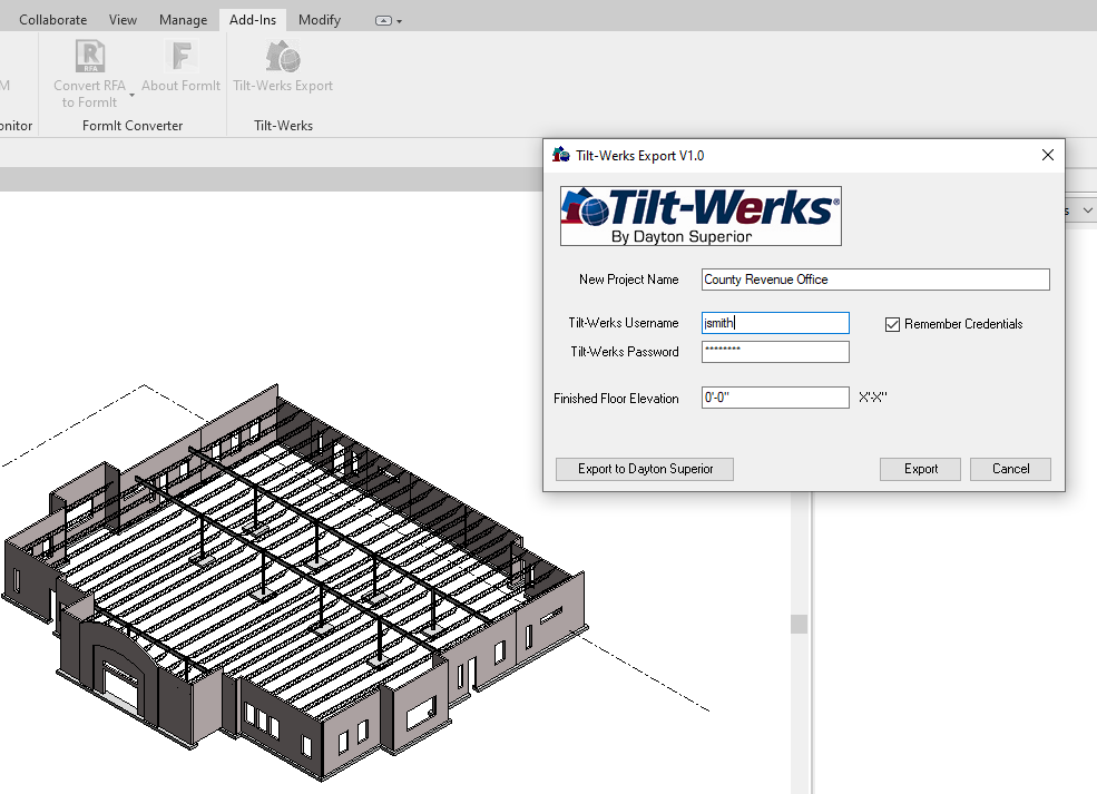 Tilt-Werks Export is a free, time-saving Autodesk® Revit® plug-in. It allows you to start your workflow in Revit, and transfer your project into Tilt-Werks (instead of re-entering) when analysis related to tilt-up engineering, lifting and bracing is desired.