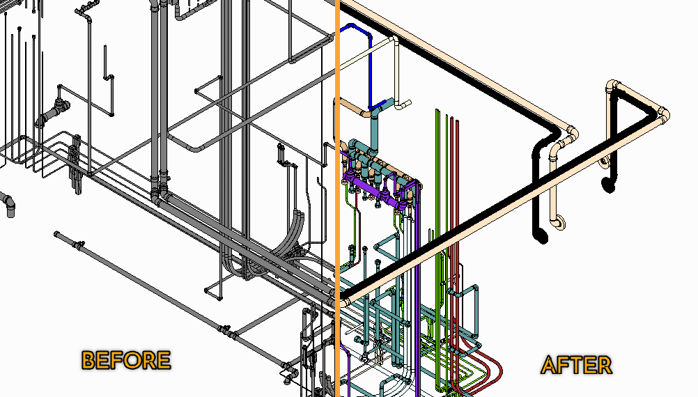 MEP designers using Fabrication parts in Autodesk® Revit® often need to colorize the model per service for easy coordination and checking the quality or progress of the design. Creating the view filter rules and overrides for each service takes a lot of time and effort while potentially introducing more errors.