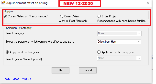 The tool automatically detects the needed offset for the element to be accurately placed on the ceiling.