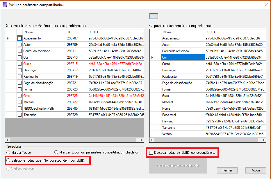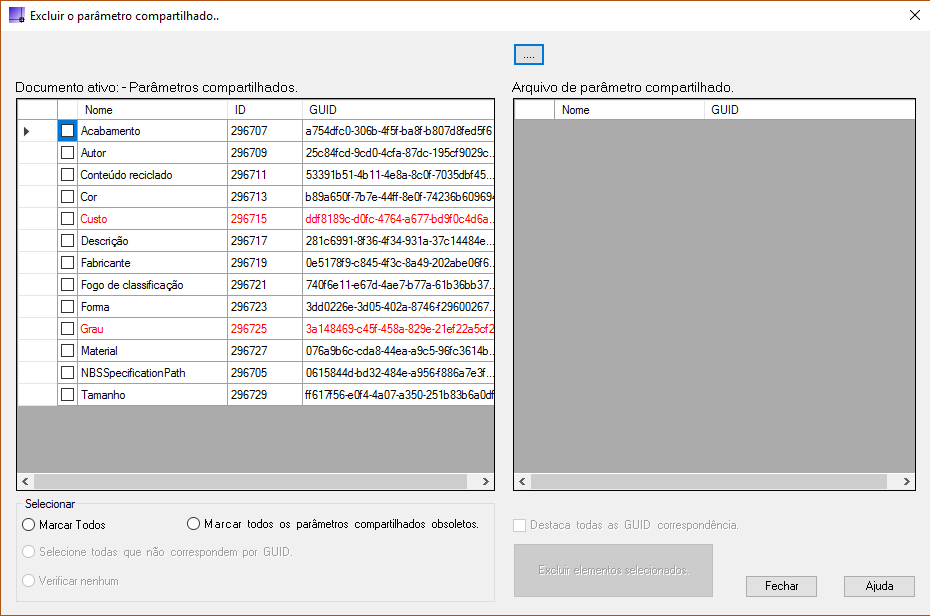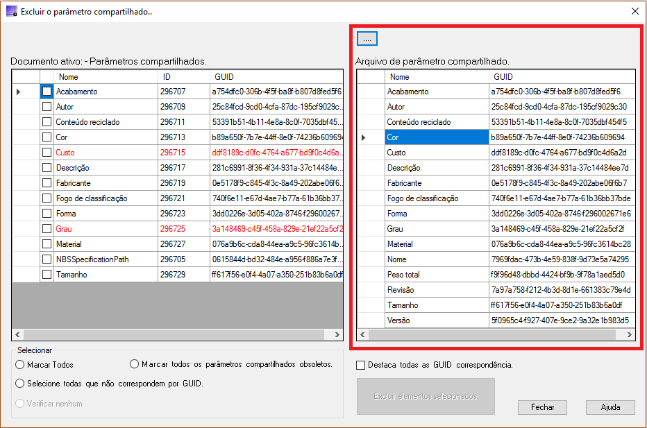 Você também pode abrir seu arquivo de parâmetros compartilhados no App para compará-lo contra o documento ativo, portanto, facilitando a fácil identificação de parâmetros para adicionar, potencialmente salvar horas de trabalho.