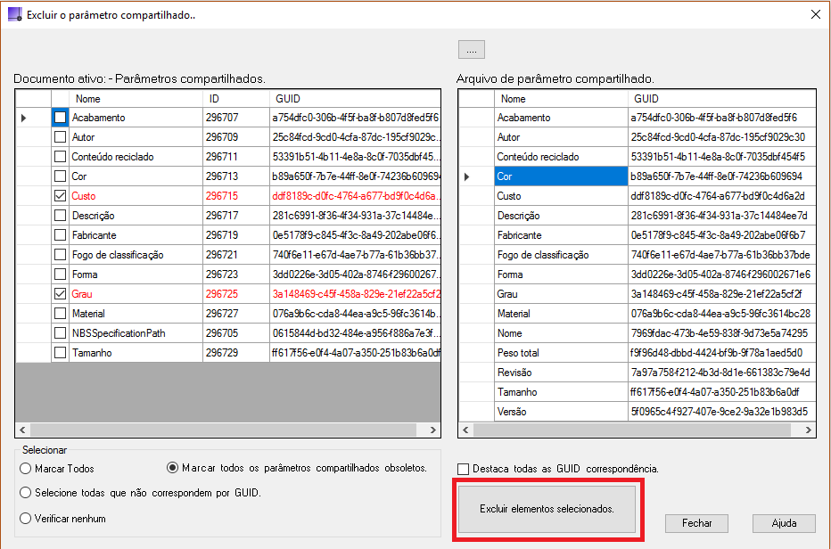 Todos os dados associados as Parâmetros compartilhados também serão excluídos.