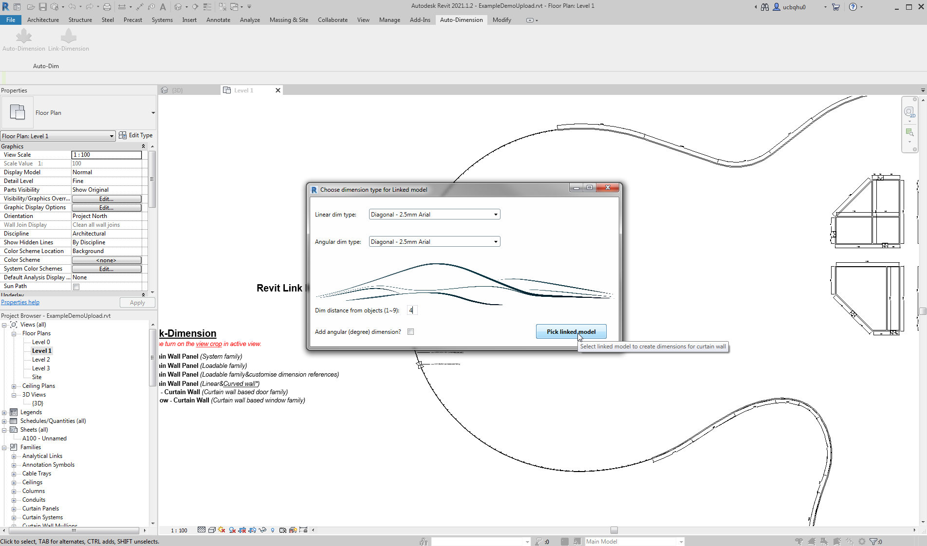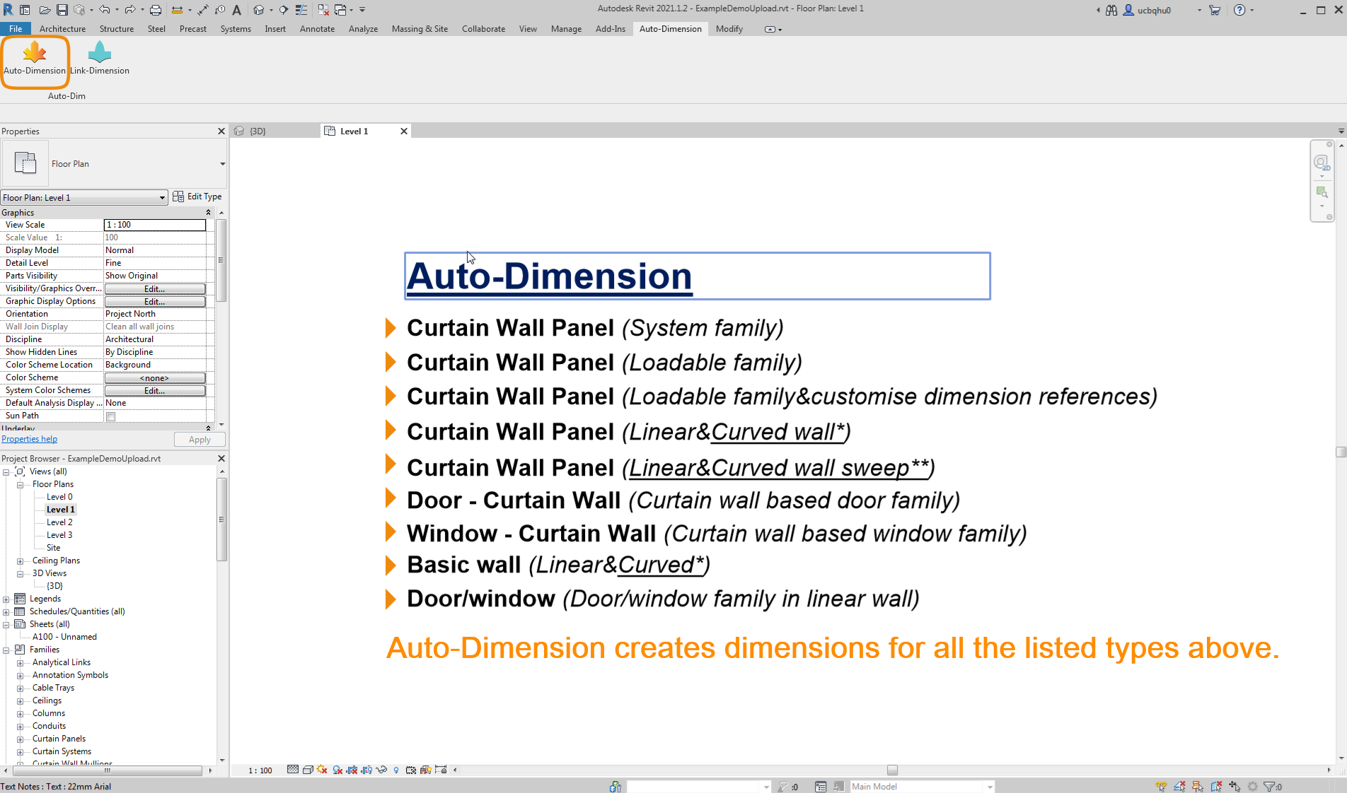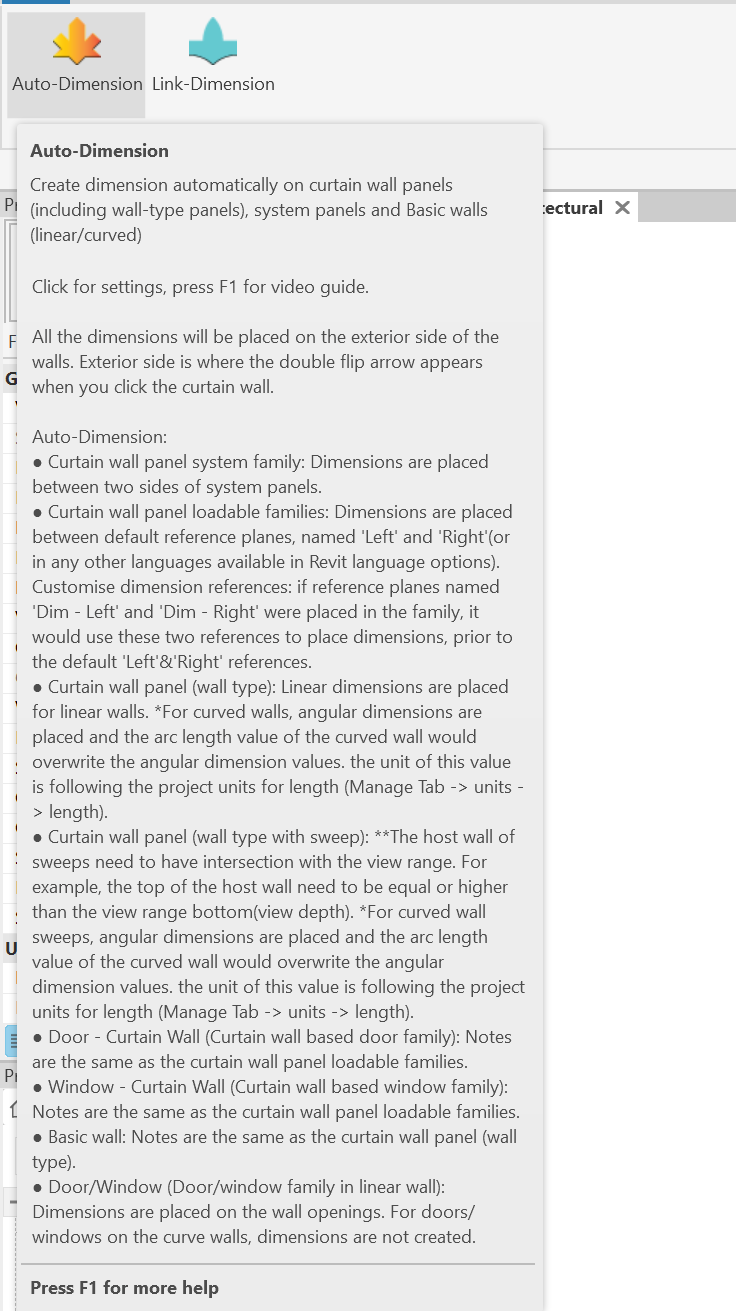 This add-in for Autodesk® Revit® creates dimensions automatically for different types of curtain wall panels and basic walls(Metric/Imperial).