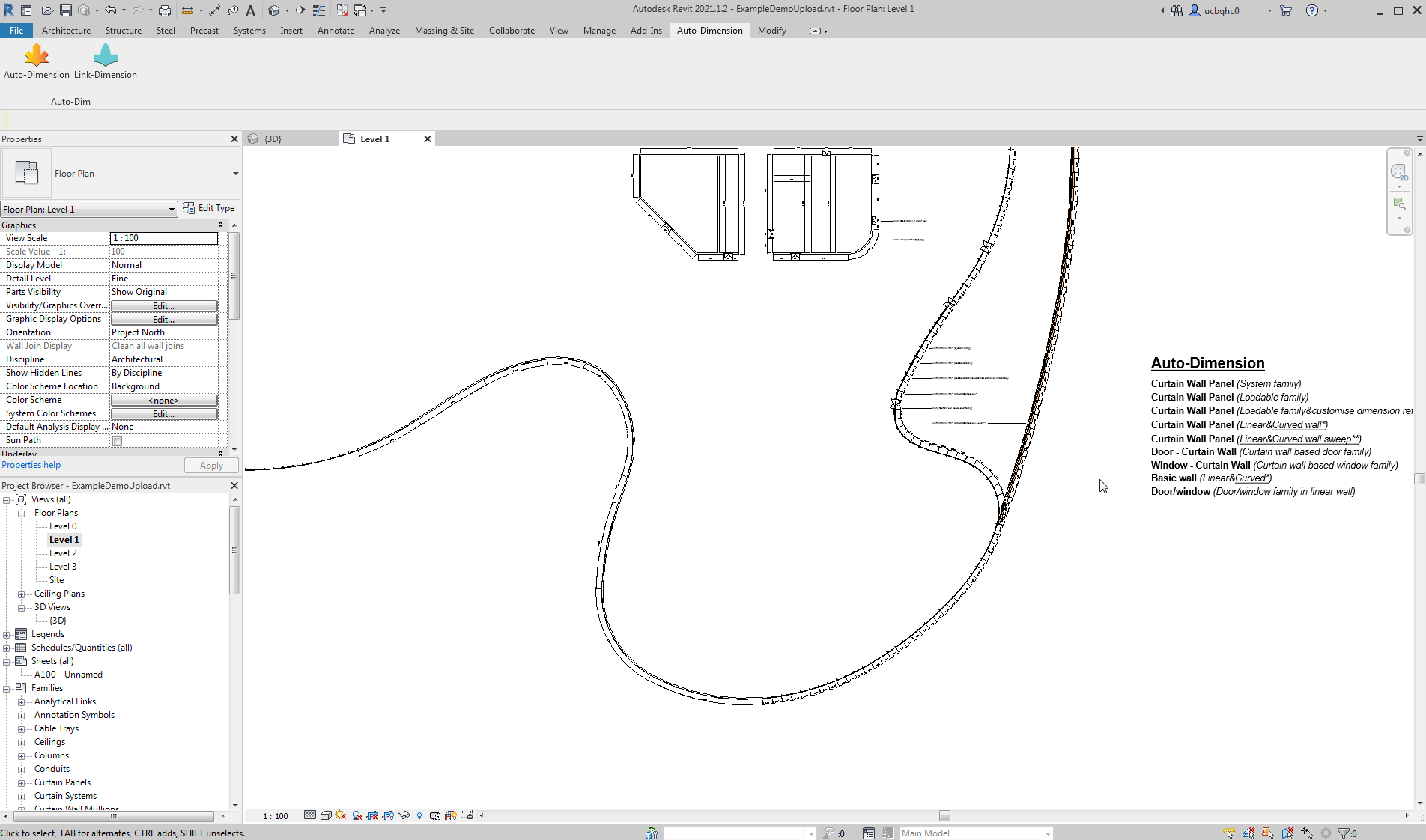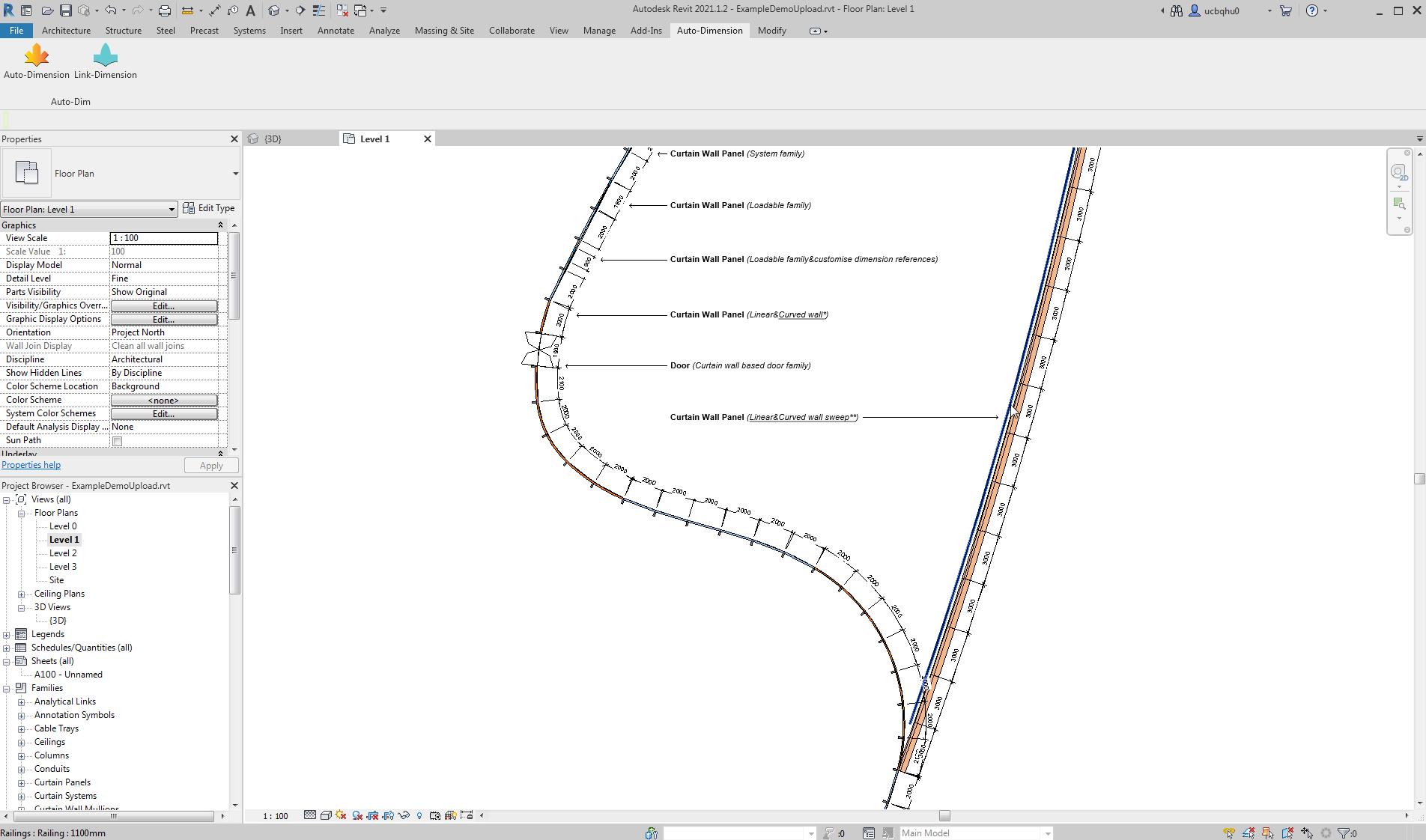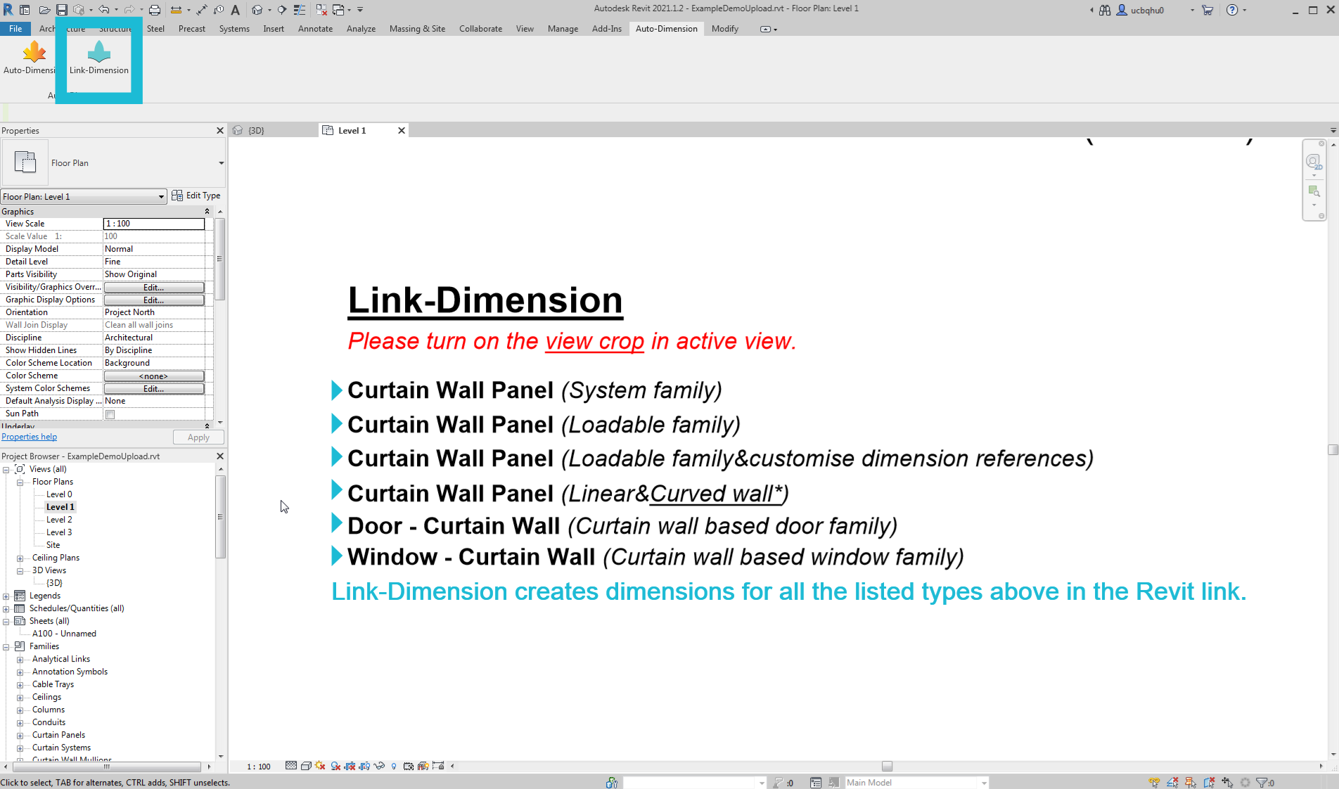 This add-in for Autodesk® Revit® creates dimensions automatically for different types of curtain wall panels and basic walls(Metric/Imperial).