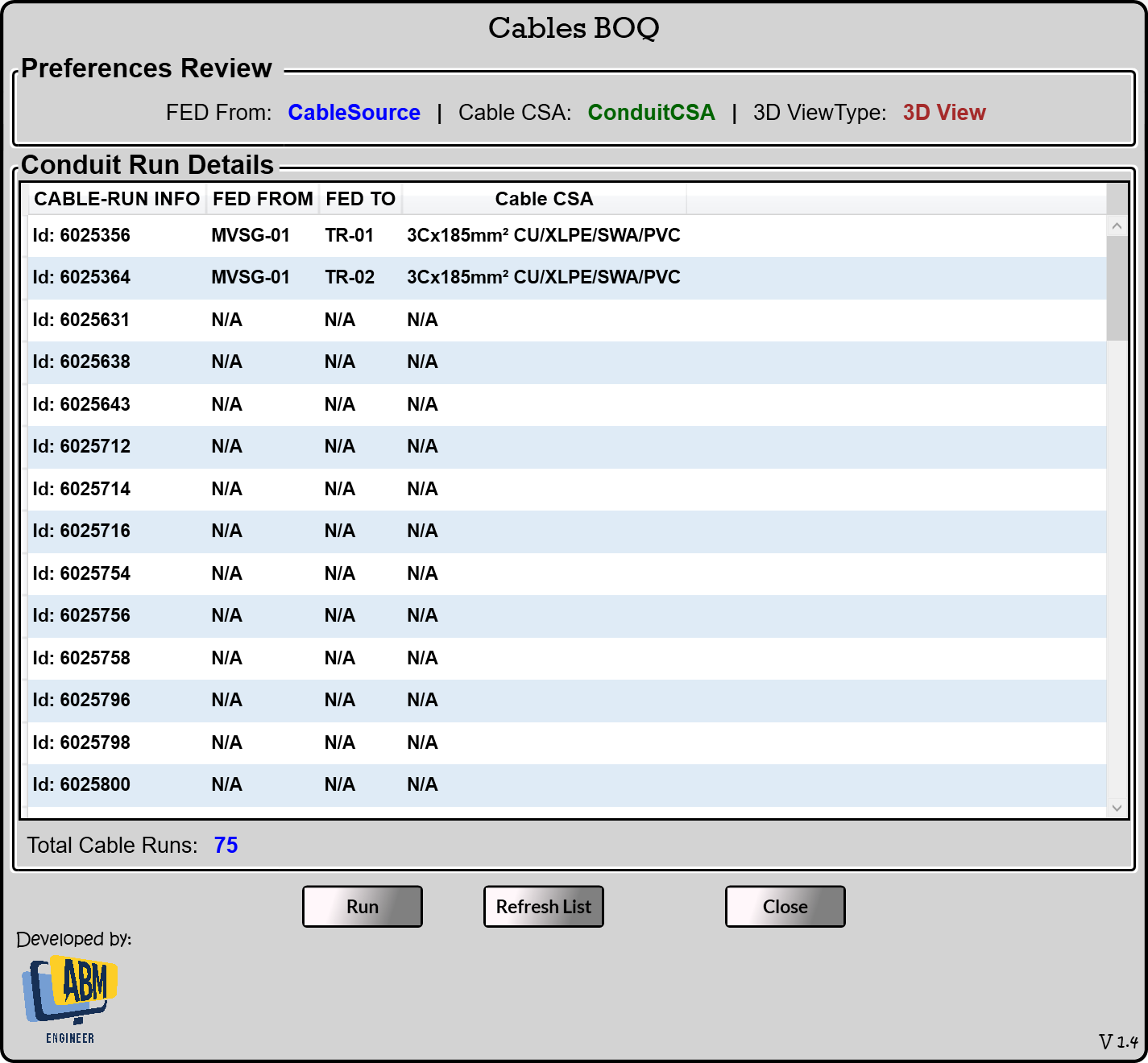 This tool is engineered to streamline cable modeling, providing an intuitive and effective solution to quickly generate accurate cable quantities, enhancing productivity, and optimizing project workflows.