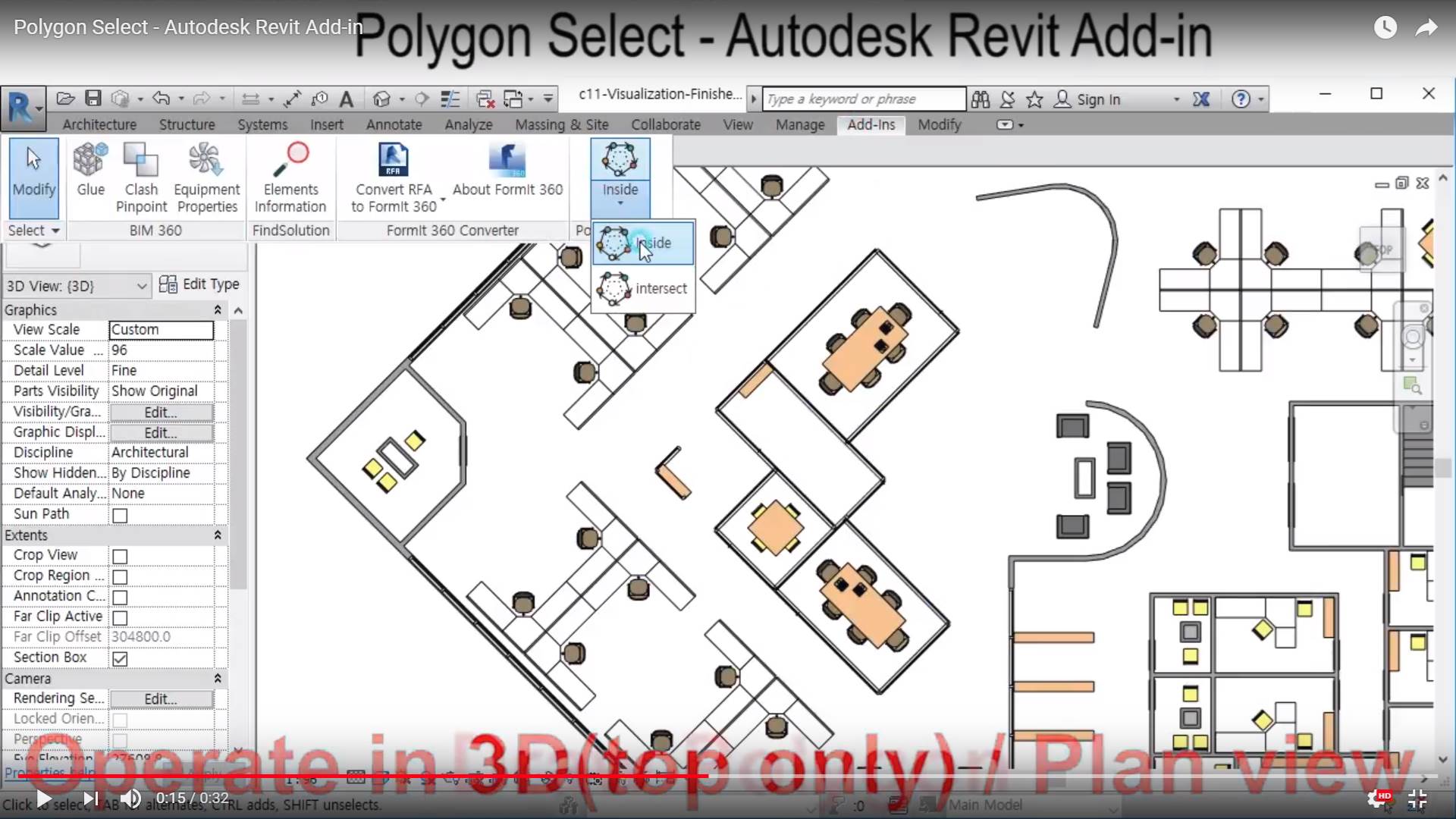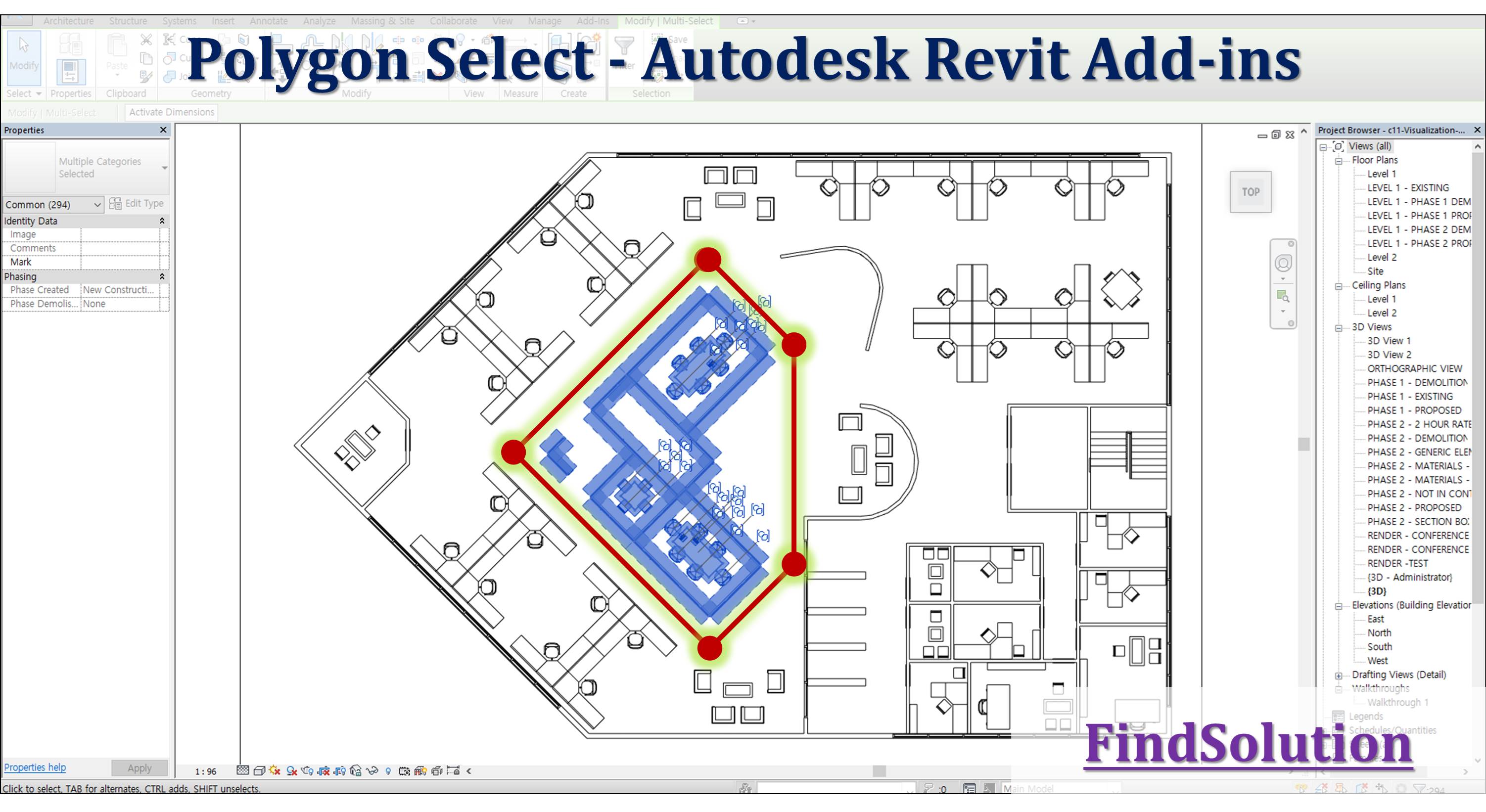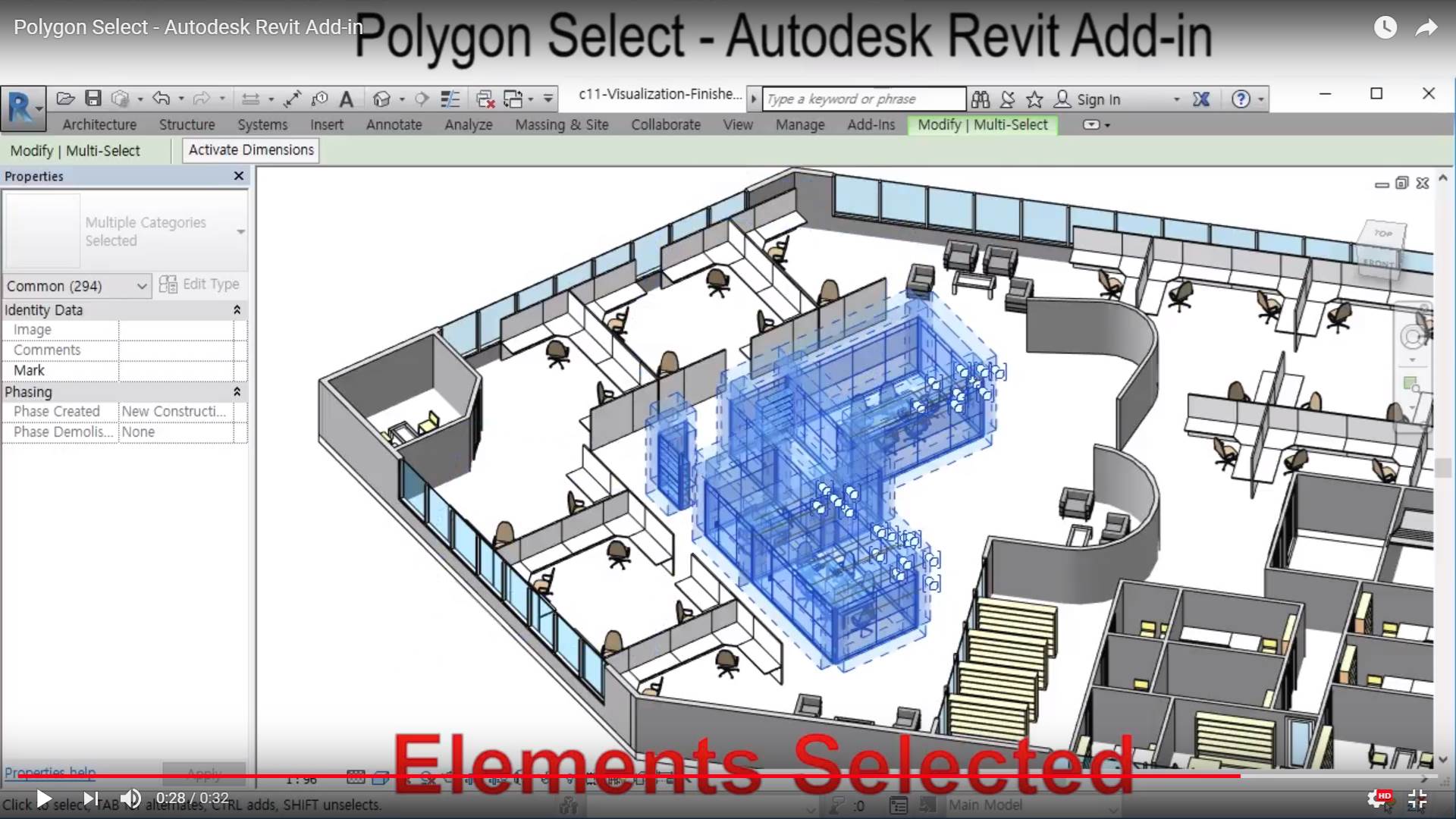 Autodesk® Revit® provides a method to select multiple elements by drawing a rectangle shape.