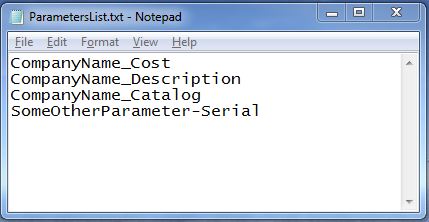 - Dynamic Parameters List File: No need for special files, just a notepad with desired parameters names line by line