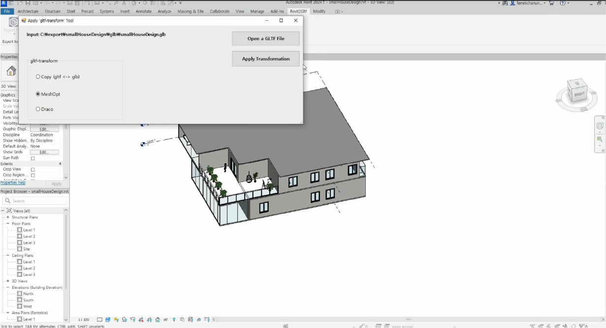 1. Export to GLTF: A function to use when converting a Revit file to a GLTF (text + bin) or GLB (binary) format.