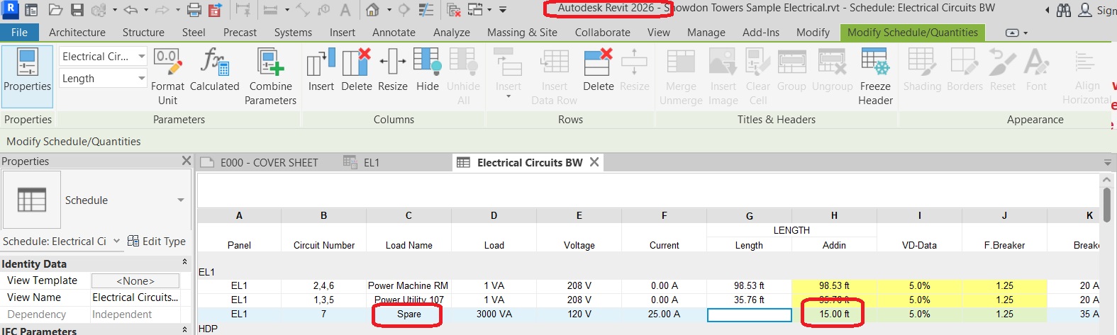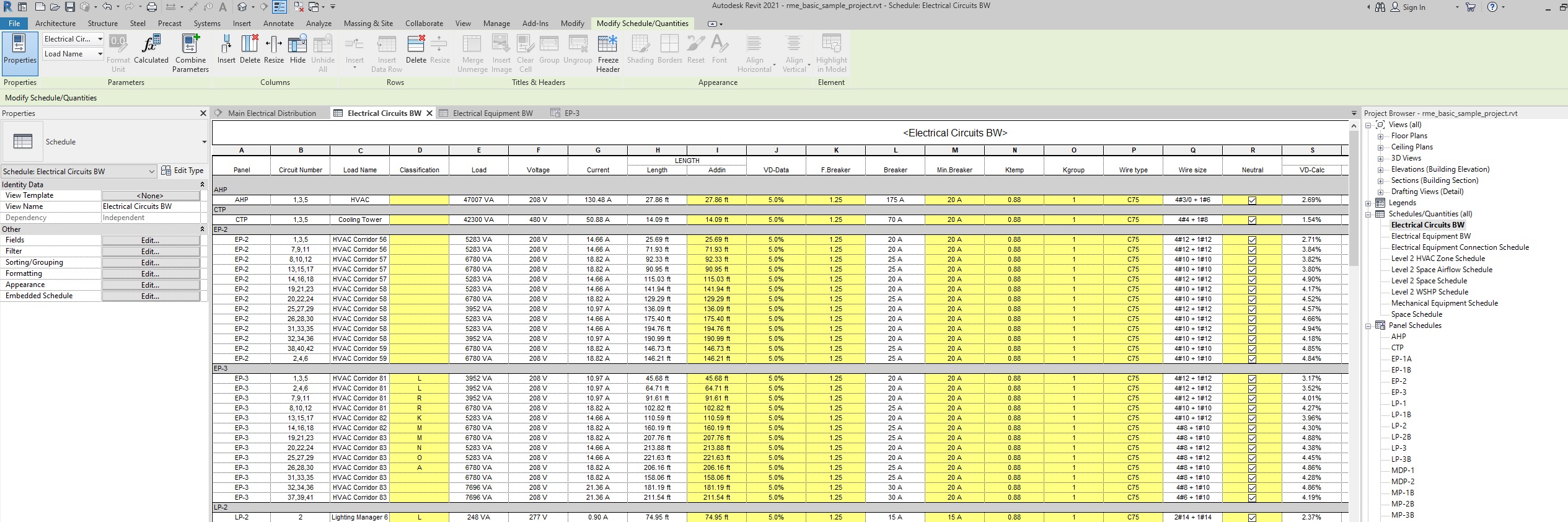 - Wire sizing: According to the load of the circuit, for panelboards circuits can be used the Estimated Demand of Autodesk Revit or the demand calculation of the addin.
