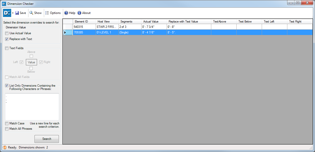 This tool finds dimensions whose text does not show dimensionally accurate values.