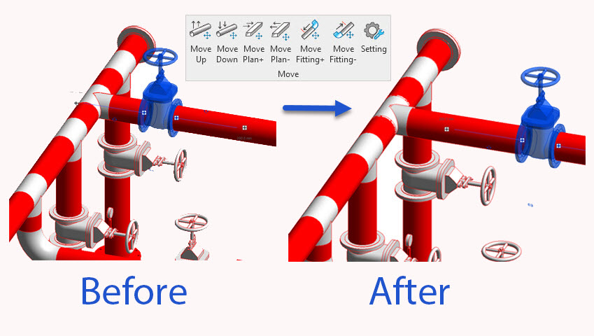 This add-in allows for modifying MEP objects such as pipe fittings, duct fittings, valves, etc. We provide many tools to perform modifications such as rotating fittings, moving fittings, placing valves, and creating vertical MEP.