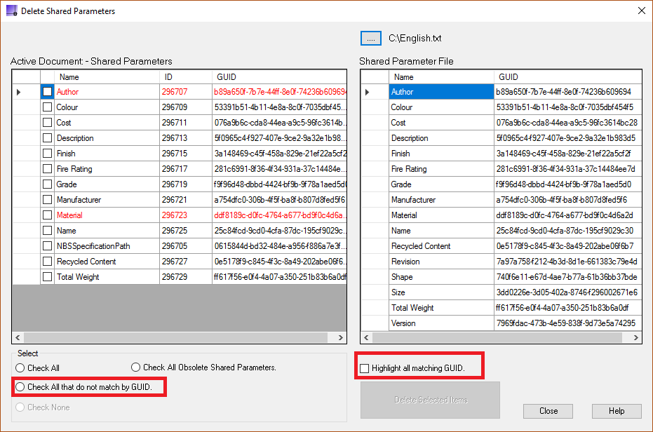 You can also open your shared parameters file in the App to compare it against the active document therefore facilitating easy identification of parameters to add, potentially save hours of work.