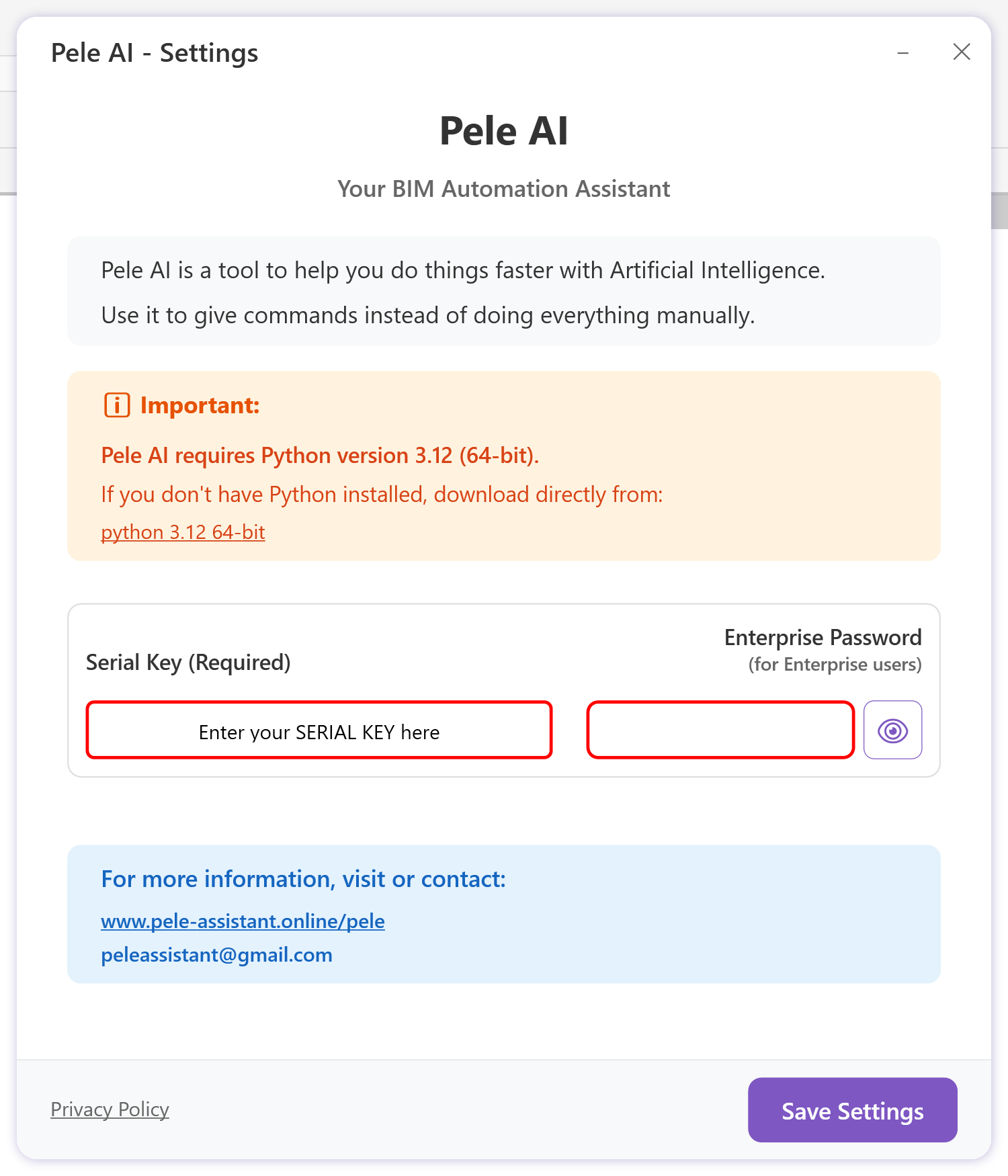 Pele is built to integrate smoothly into your Revit environment and supports versions 2021 through 2026.