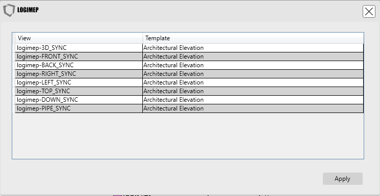 The view "PIPE_SYNC" is dynamically synchronized with pipes, conduits, ducts and cable trays in mode auto. The user can also chose the element to put the view "PIPE_SECTION" on with the button select.