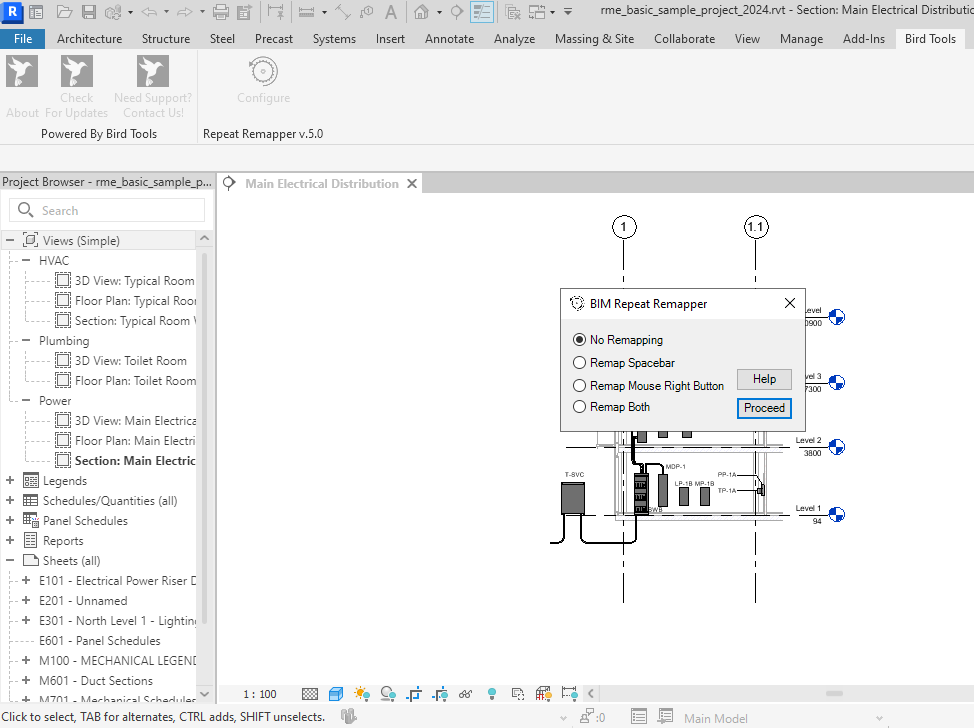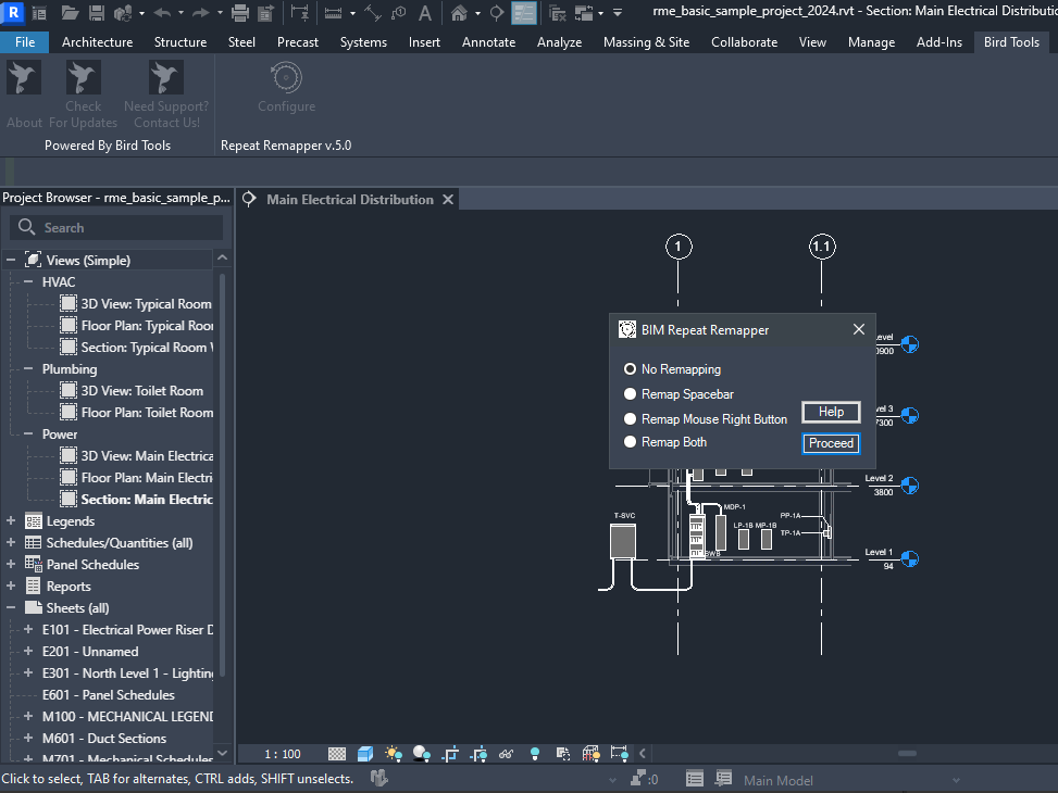 “Bird Tools - BIM Repeat Remapper” is a free Autodesk® Revit® Add-On that enables the user to remap the "Repeat Last Command" command to the spacebar and/or the right mouse button.