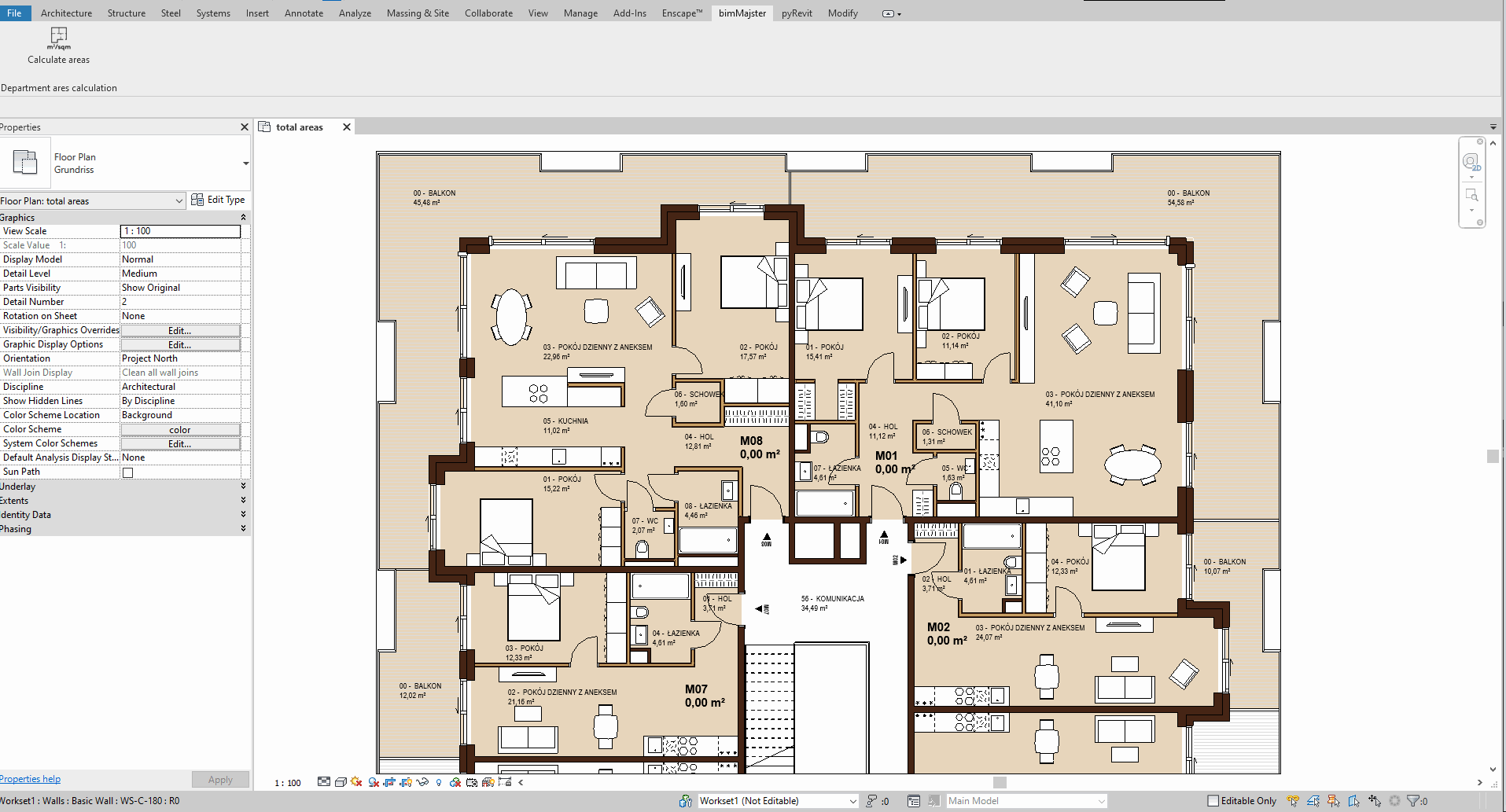 This app allows the summarizing of areas for rooms that belong to one department. The summed area is then written back to rooms into the desired parameter. Because of this, it is possible to show in plans the areas of departments with standard Autodesk® Revit® tags. Values are updated when the script is restarted. Rooms are grouped by the same values of the desired parameter.