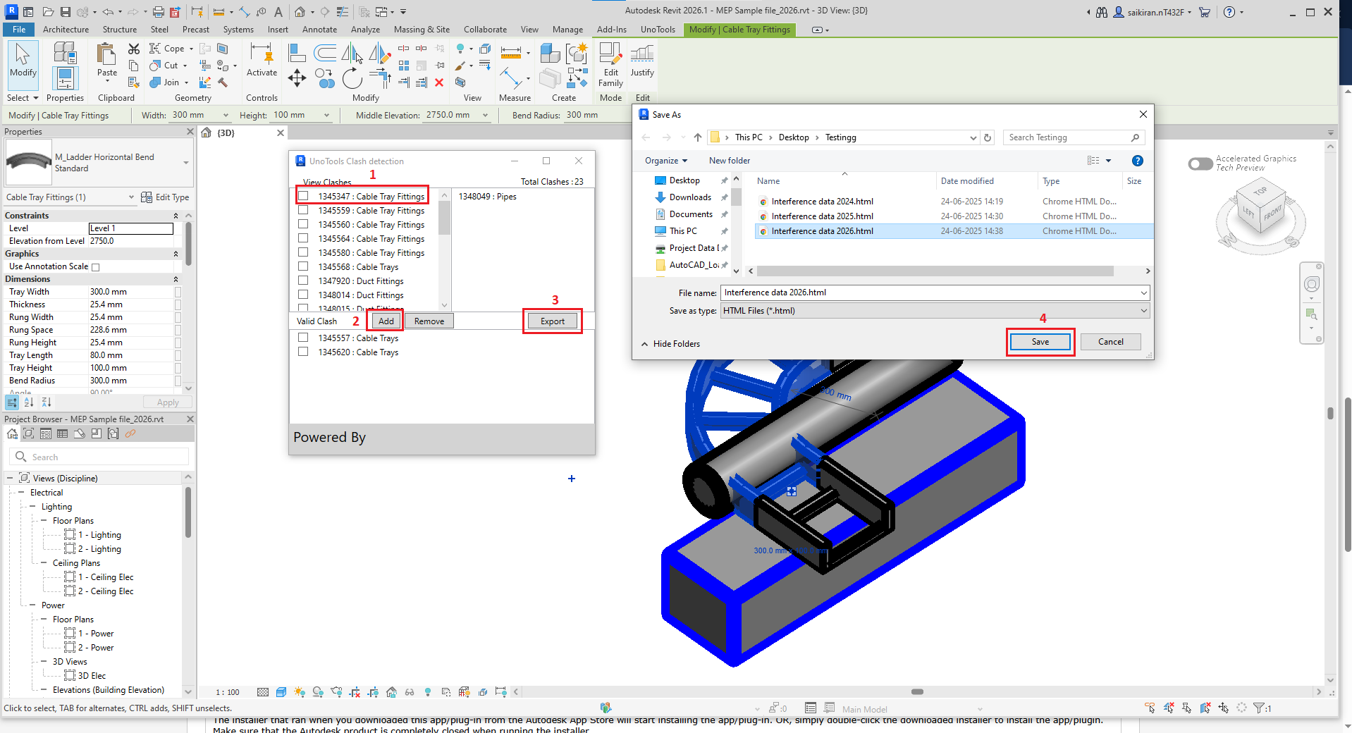 The tool also offers clash report exports in both HTML and Excel formats, supporting clear documentation and streamlined collaboration. Seamlessly integrated into the Revit interface, it supports both window selection and active document analysis, enhancing overall project accuracy and efficiency.
