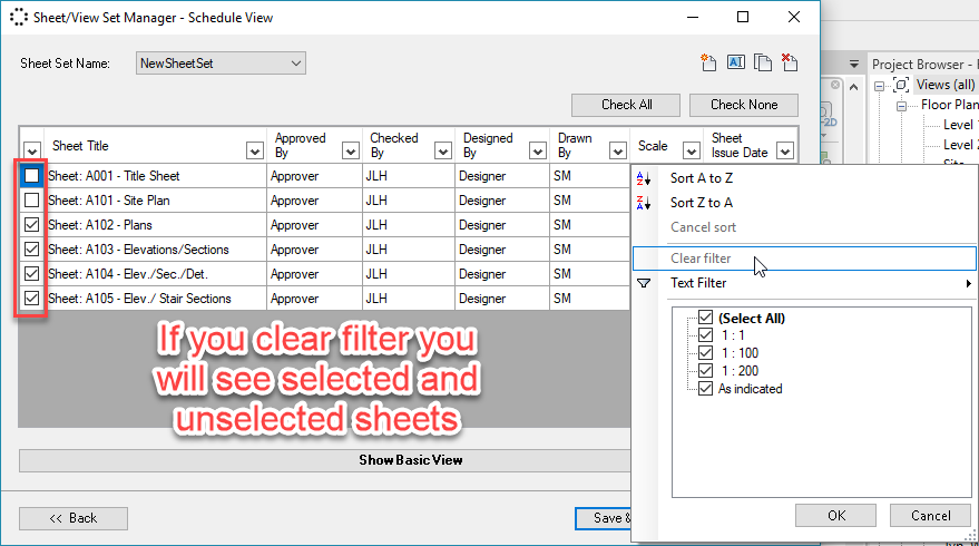 In Schedule View, you could manage your sheet sets by using a table and filtering sheets based on their parameters. This is very practical because most of the time there are too many sheets and it's hard to select the desired ones. And as a result, the probability of mistakes in selection sheets will increase.