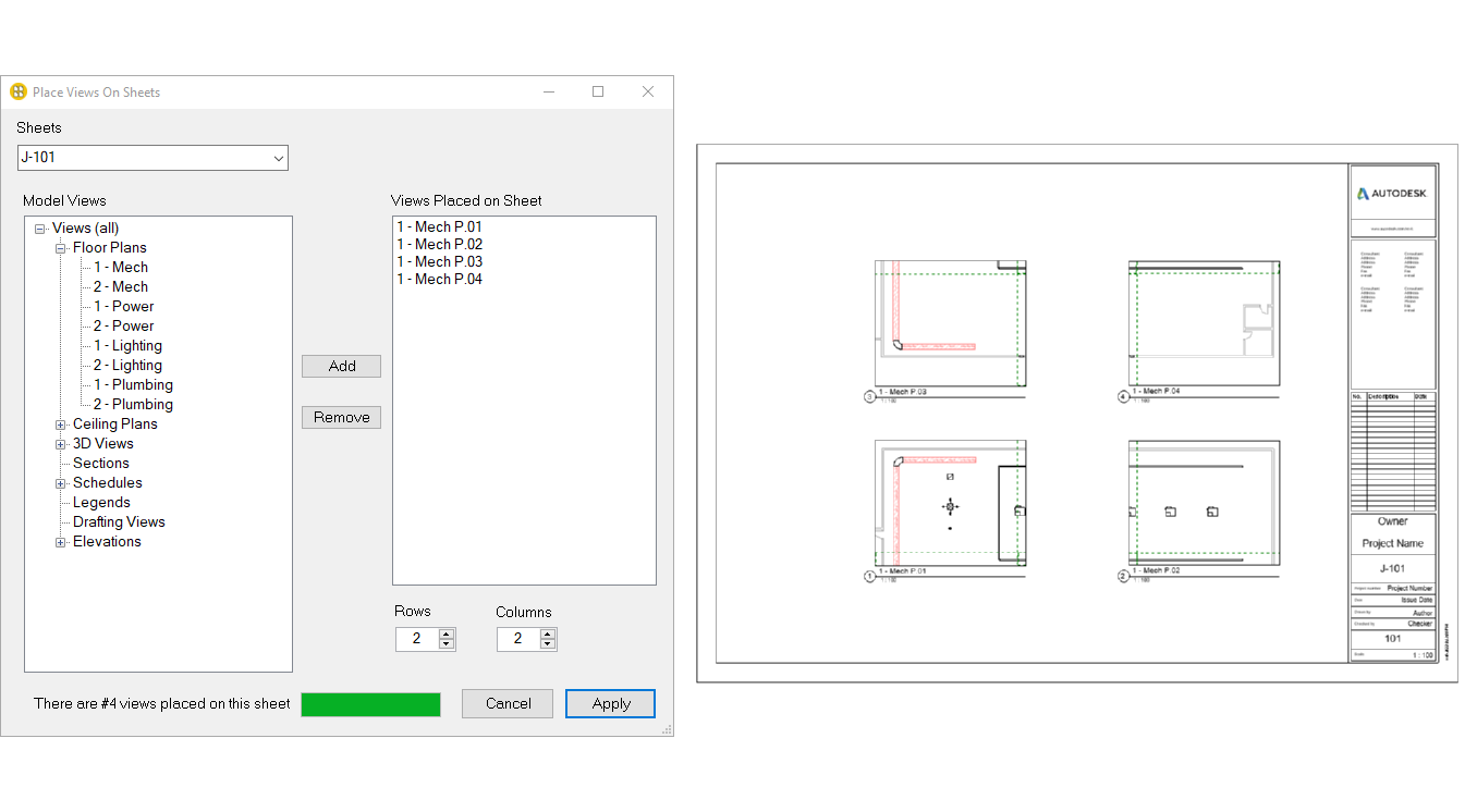 This tool is designed to place multiple views on sheets with a desired arrangement automatically.