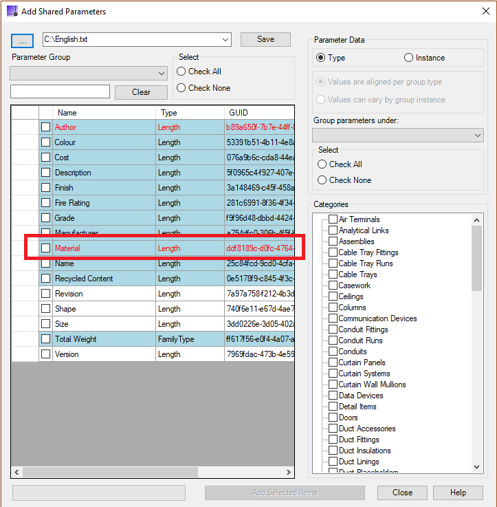 It also highlights parameters that already exist within the active document and obsolete parameters, which are not bound to a Category.