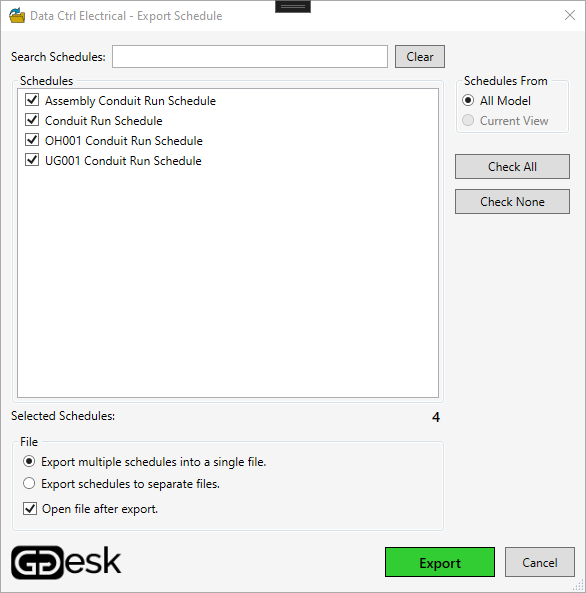 - Export Schedule: This feature allows you to export schedules to Excel® file(s), even if Excel isn't installed on your system, enhancing data management efficiency.