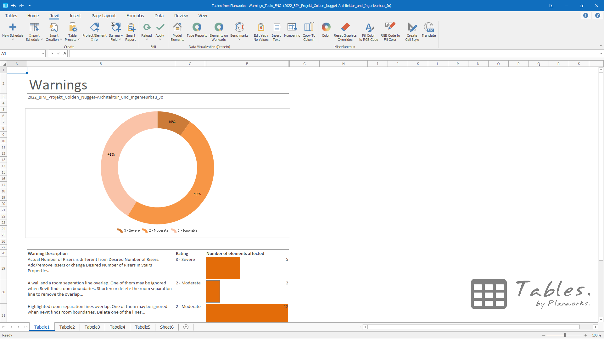 Tables is a spreadsheet application deeply integrated into Revit - think of it like having the power of Excel inside Revit. It works bidirectional - which means that you can make edits in the spreadsheet and push the values back into Revit - and is 100% compatible with Microsoft Excel. With Tables, you can not only create and format beautiful Excel spreadsheets directly from Revit and create templates that you can use for further projects, but you can also edit, structure, manage, or compare your Revit projects. You can write information from your xlsx Tables file back into your Revit model and use the same logic for other projects.