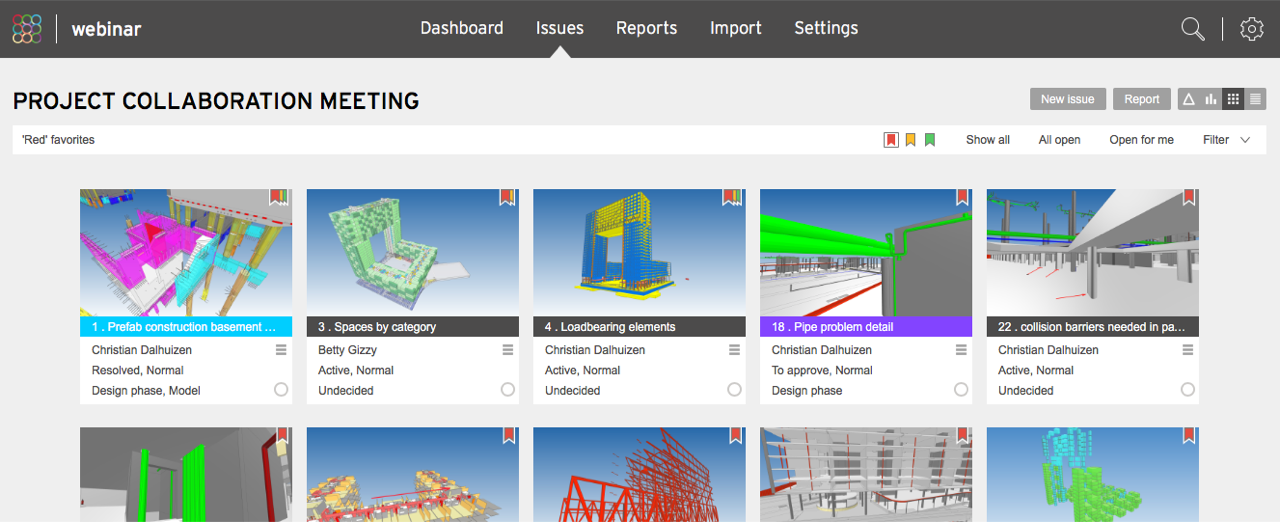 With the BCF Manager for Revit issues can be imported, created and updated directly from Revit.