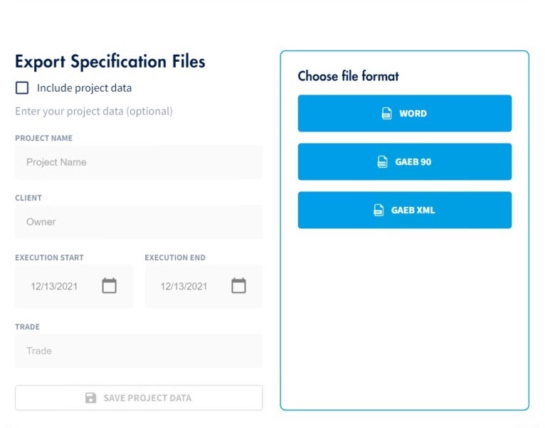 As added service, the Plug-In offers you an integrated tender function. Let the Plug-In do the work and calculate the bill of quantities for you at the click of a button. To ensure the highest degree of flexibility, the Plug-In enables you to export tenders in various formats.