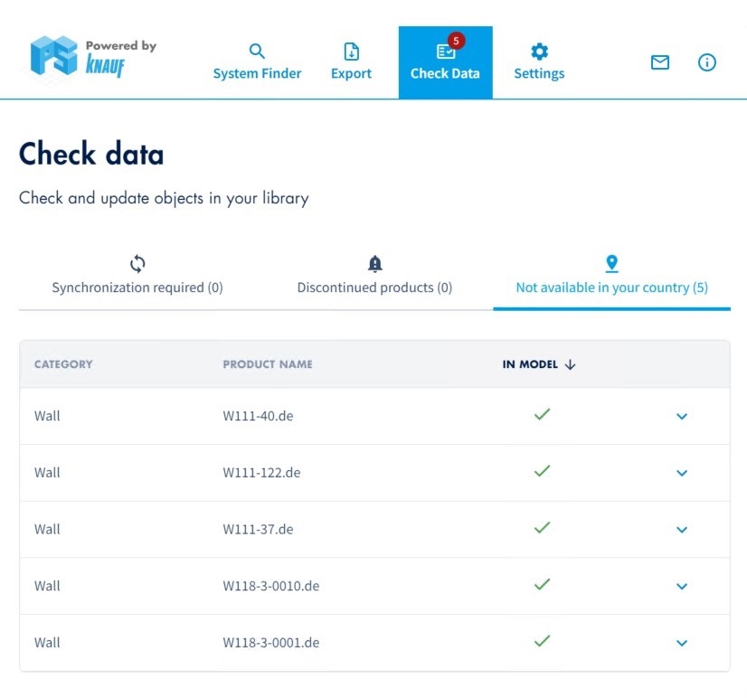 Of course, BIM objects in the Plug-In are based on the most current data. To ensure this remains true for products you inserted into Revit in the past, the Plug-In features a data validation function. With this function, you can easily check the accuracy of all Knauf systems in your model. Any objects with updated information can then be brought to the most current version at the click of a button.