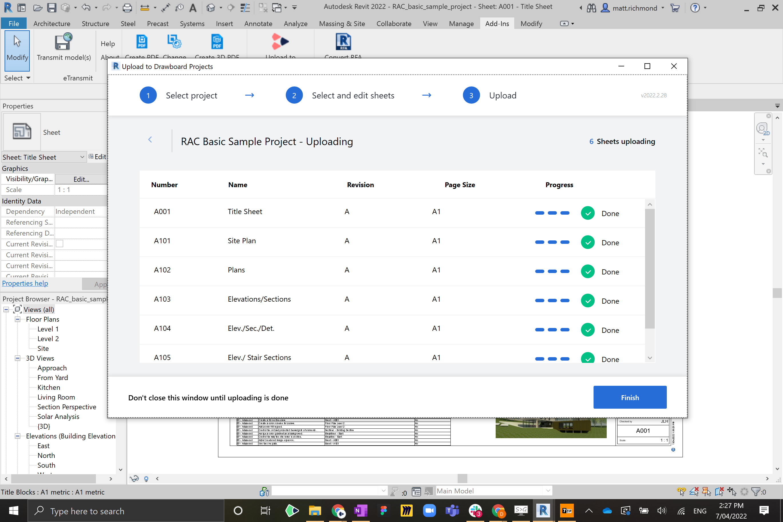 This integration uploads sheets from a Revit project into Drawboard Projects: a live markup environment for design and drawing review.