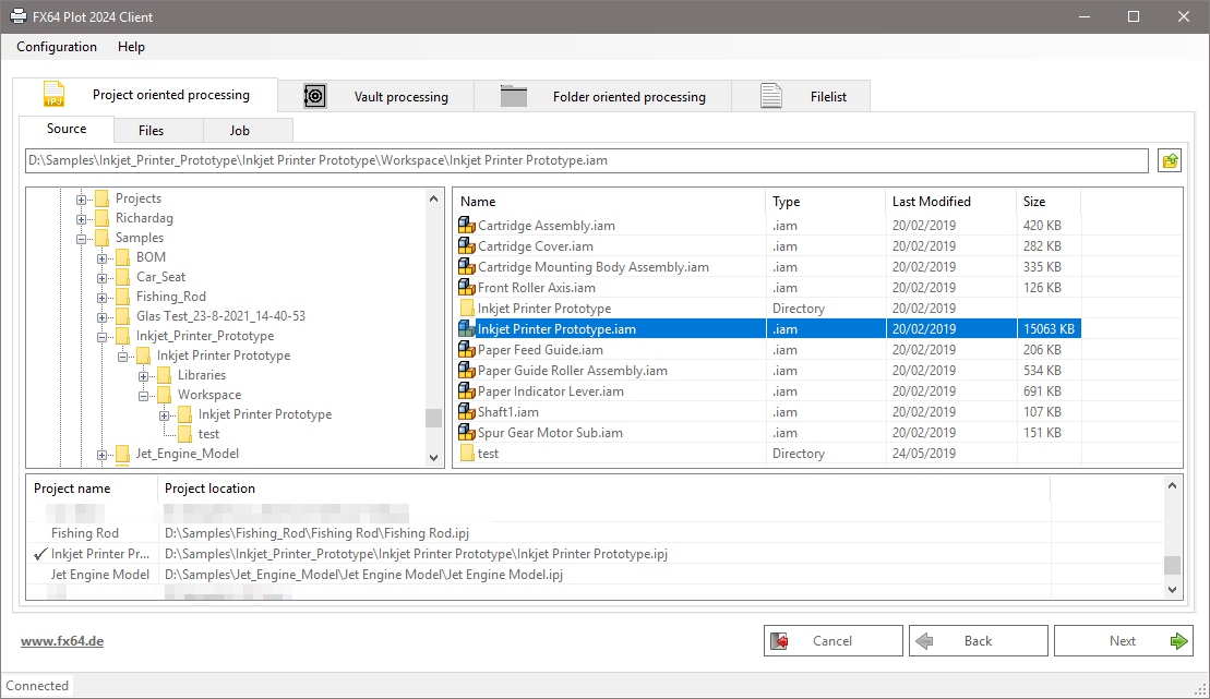To get the program running, you basically just select a design project and assembly file. The program automatically searches all associated drawing files of the assembly and its components and you can then comfortably select the drawings you want to process. The program also supports files stored in Autodesk® Vault® and it contains file system based search functionality in case you want to print all the files in a specific directory. You can also import and process file lists from third-party document management systems.