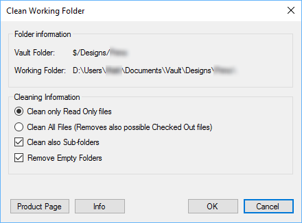| Clean All Files | Delete all files from the folder. Note! Deletes also Checked out files (which are not Read Only files in File Explorer. |