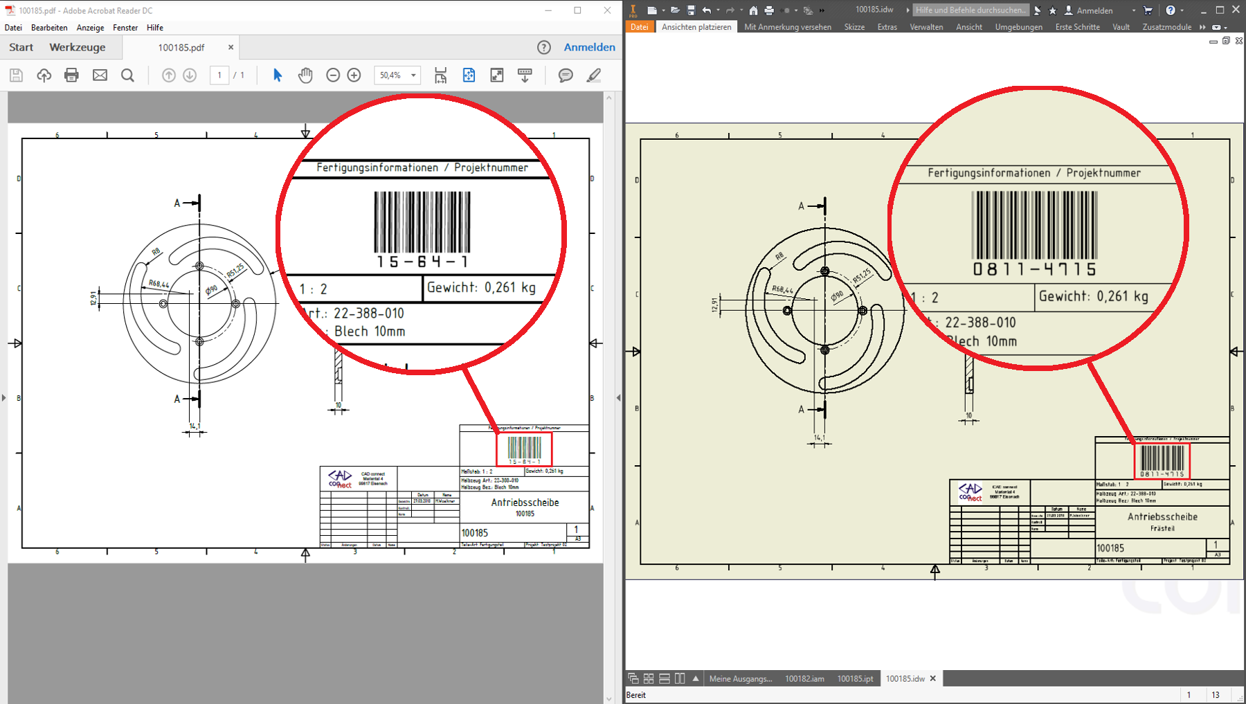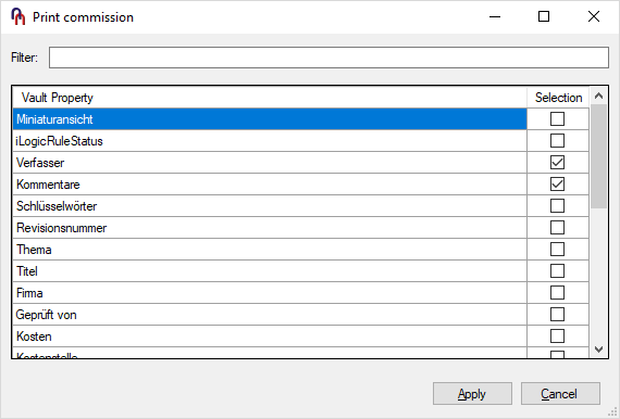 With the print commission, you can quickly and easily place your texts in the drawing heads for the entire print job. This is also possible with released documents. It is important that the fields are created as iProperties and mapped with Autodesk Vault. Use this feature to transfer project information or production-related data, such as barcodes, to the entire set of documents without the need for a separate file check-out.