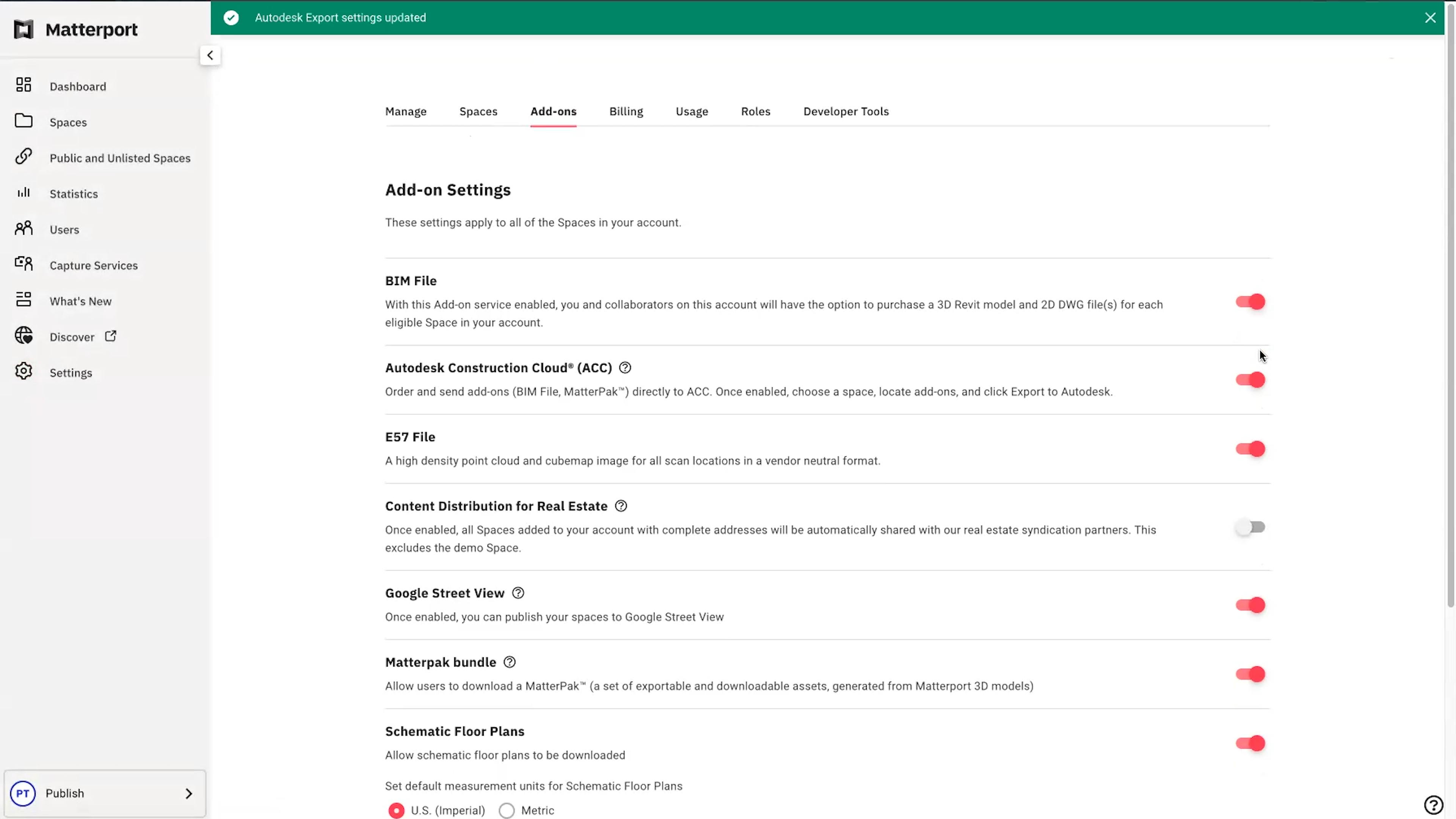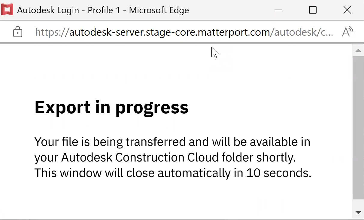 • Once the add-on is ready in your Matterport account, choose Export to Autodesk