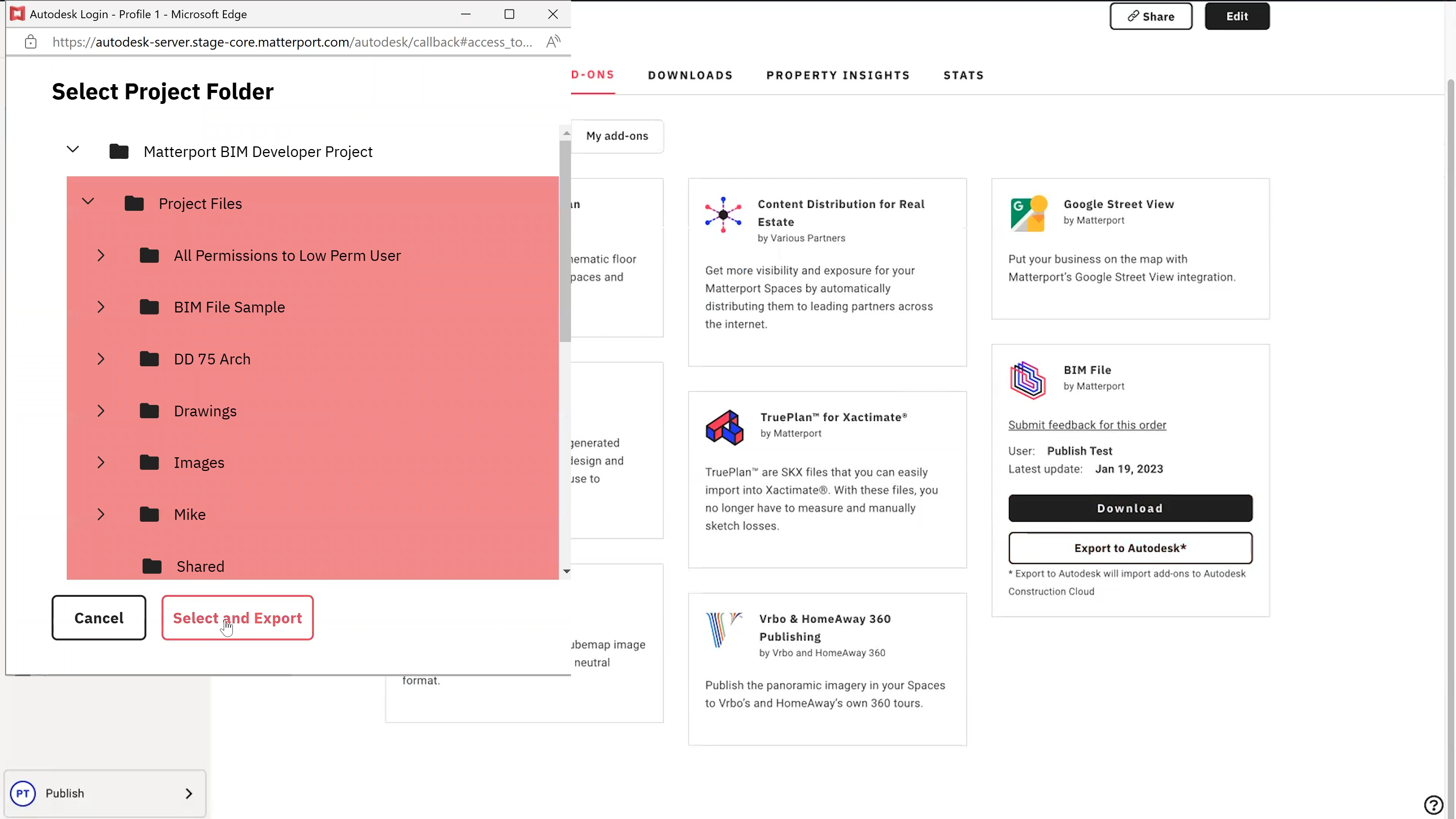 Send Matterport add-ons to Autodesk Construction Cloud: