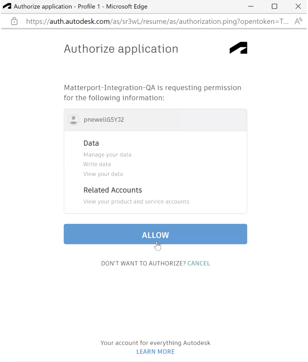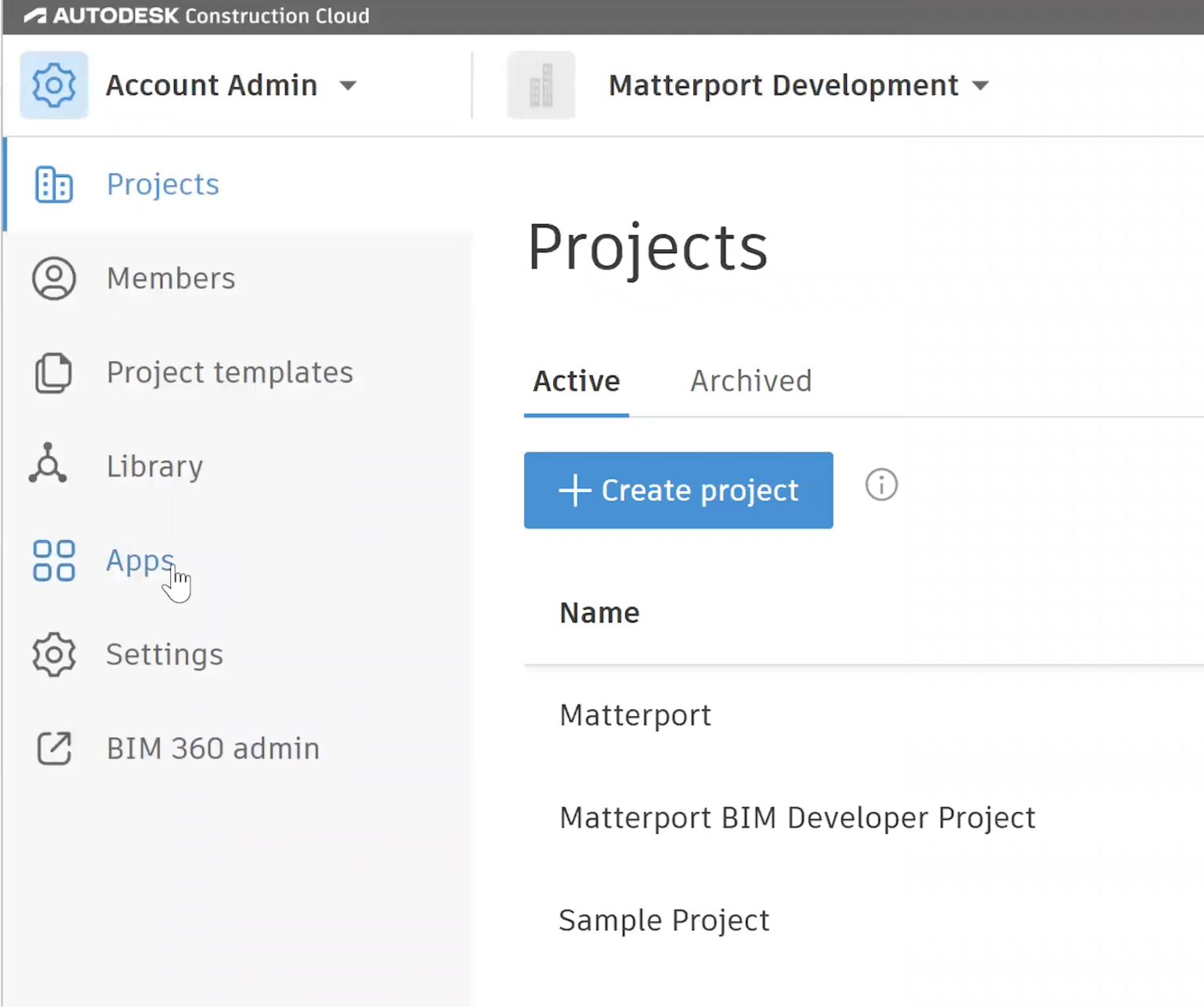 • Have your Account Admin login to ACC and install Matterport via Apps